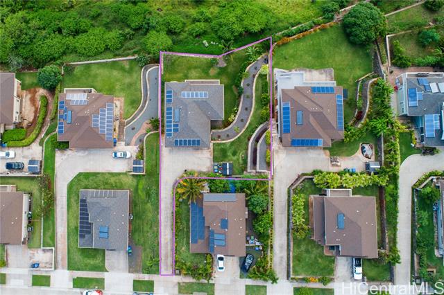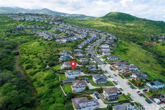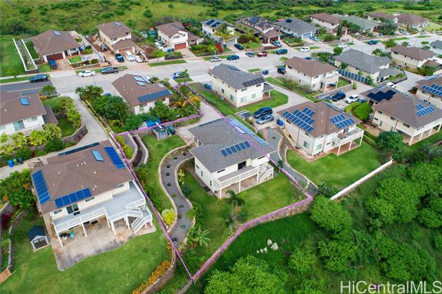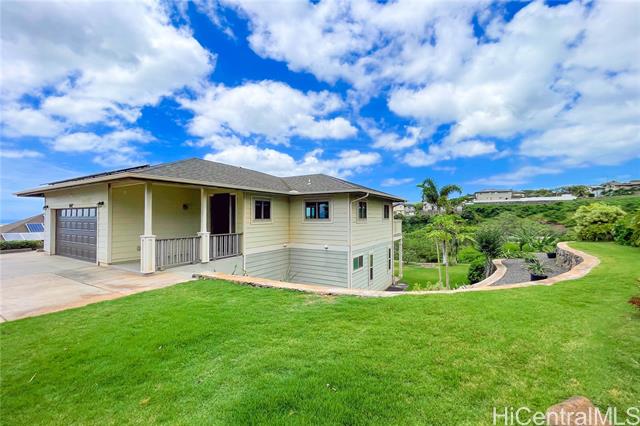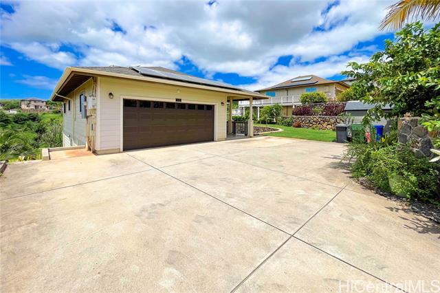 Stunning Rim Lot home in Makakilo! This immaculately maintained 3BR/2.5BA single-family residence offers unparalleled privacy with no back neighbors. Enjoy breathtaking panoramic Sunset views stretching across the coastline and Pacific Ocean from your expansive balcony or private yard. This move-in-ready home features premium upgrades, including luxury vinyl flooring throughout, a brand-new garage door, and fresh new flooring in both the garage and front patio. Rest easy with high-end security doors and 24 owned panels on net metering with 4 batteries for maximum energy efficiency. The exterior is a tropical retreat with tiered rock walls and lush landscaping. Located in the heart of the "Second City," you are minutes from premier shopping and dining at Ka Makana Ali‘i, world-class golf, and Ko Olina’s lagoons. With easy H-1 access and proximity to regional parks, this home combines luxury, sustainability, and convenience. Don’t miss this rare opportunity to own a piece of paradise with views that must be seen in person!