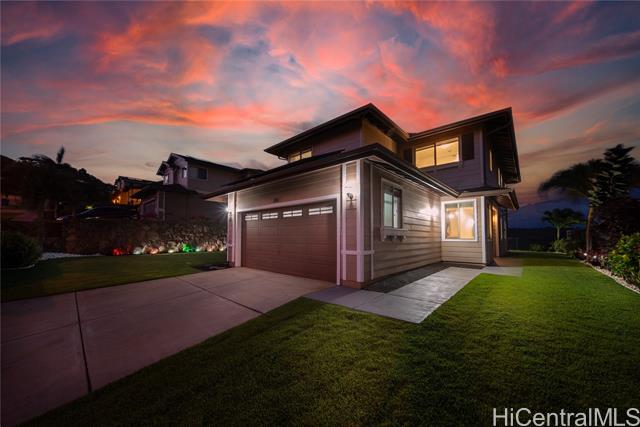 $100 Electric Bill because of Solar Panels?? YES PLEASE!!! Also VA ASSUMABLE option!!! Perched up Makakilo, this stunning D.R. Horton home offers the ultimate blend of island living, breathtaking ocean views, and iconic Diamond Head vistas. Imagine waking up to gentle breezes and panoramic scenery—this is Hawai‘i living at its finest! Built in 2012 with comfort and style in mind, the open-concept floor plan seamlessly connects the kitchen(with newer Samsung appliances), dining, and living areas, leading to a gorgeous backyard oasis—a true entertainer’s dream! The meticulously maintained yard boasts new lush grass, thoughtful landscaping, and a custom heavy-duty mesh net elegantly securing the wood chip. Plus, there's a spacious storage shed for added convenience. A first-floor bedroom and full bath provide the perfect setup for guests or multigenerational living. Upstairs, you’ll find four additional bedrooms and a versatile loft—ideal for a home office, playroom, or extra living space. This home also features solar panels designed to keep electricity costs low! Located in the desirable Makakilo community, this home is more than just a place to live—it’s a slice of paradise.