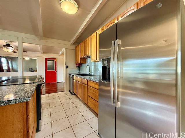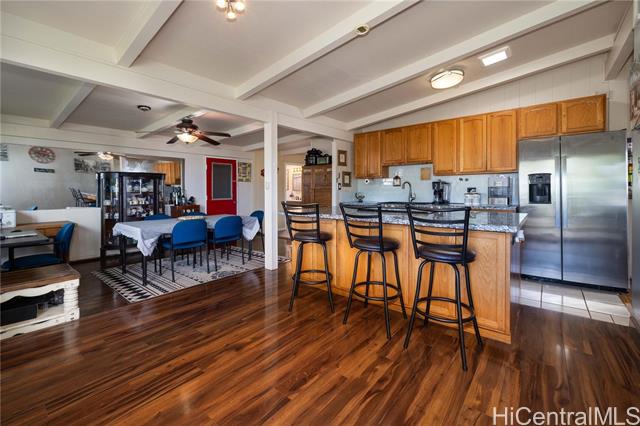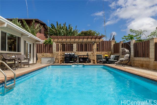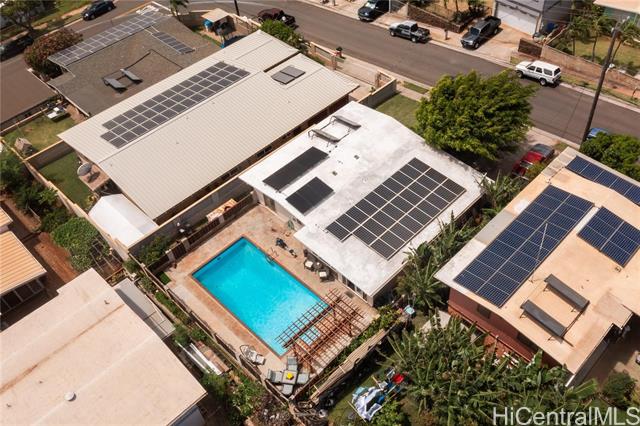 SELLER TO OFFER $20,000 IN CREDITS TO BUYERS! Enjoy this single level home, single family home, with Diamond Head views and NO HOA's in lower Makakilo! Enjoy the beautiful Hawaii weather and entertaining with your own backyard oasis and swimming pool to stay cool. 32 leased solar panels on a Net Energy Metering (NEM) agreement, with a solar water heater for energy efficiency. Large granite kitchen island and hardwood/tiled flooring throughout. Easy to see on short notice! Opportunity for a VA assumption at interest rate of 2.75% (to VA eligible Buyers only).