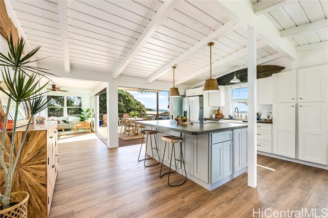 Experience the best of island living in this completely remodeled 3 bedroom 2 bathroom single-level home in Lower Makakilo. This rare to come by property has been tastefully upgraded from top to bottom and boasts breathtaking ocean and Diamond Head views, seen from the large wraparound lanai, designed for seamless indoor-outdoor living. The open-flow concept showcases a spacious kitchen with concrete island, stunning finishes throughout and a bright and airy layout that is perfect for entertaining. The primary bedroom suite feels like a private retreat, thoughtfully set apart from the rest of the home featuring an ensuite and a walk-in closet. Outdoors, enjoy the fully fenced in front yard or spend time under the fruiting mango tree with a fun treehouse and slide, perfect for kids or as a unique spot to relax. Conveniently located in lower Makakilo with quick freeway access and close to everything that Kapolei has to offer including shopping centers, restaurants, West Oahu beaches, and the Ko Olina Lagoons. Come by and see if this island home feels like the perfect fit for you!