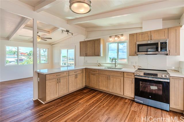 Welcome home to 92-706 Palailai Street, a stunningly remodeled residence where modern luxury meets island living. Perched on a generous 6,000 sq. ft. lot, this home features an enclosed lanai with breathtaking ocean views, perfect for sunset dining or morning coffee. Every inch of the interior has been thoughtfully upgraded with contemporary finishes, new fixtures, and elegant design details that outshine its official tax record square footage. With no HOA, full privacy, and effortless access for showings, this property offers an unbeatable combination of freedom, comfort, and coastal charm—making it a must-see for buyers seeking move-in-ready perfection in the heart of Oahu
