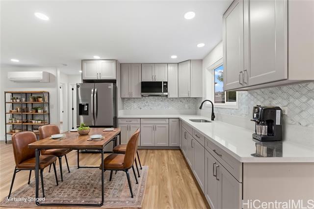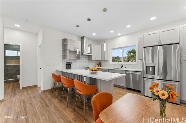 Welcome to this exceptional new construction residence in the heart of Kapolei. Where modern design island elegance, and functionally come together. This 5 bedroom 3 full bath home showcases high craftsmanship and thoughtful details throughout, perfect for modern island living. Downstair set up as 2 bedroom 1 bath with wet bar. upstairs is 3 bedroom 2 baths with full kitchen with 2 large lanai with great open concept floor plan.