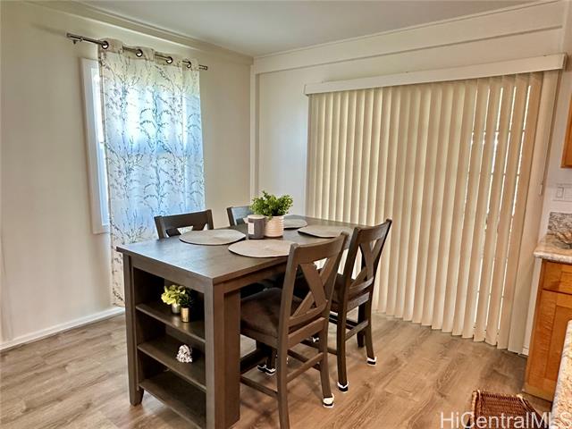 Lovely 4-bedroom/2-bath/2-carport in Lower Makakilo with NO HOA or MAINTENANCE FEES! Conveniently located near any amenity you need: Costco, Walmart, Target, Ka Makana Alii, Kroc Center, restaurants, banks, hospitals, schools, and easy to access highways...In amazing condition and ready to move-in! Home was fully gutted and renovated in 2019 and lovingly maintained since. Featuring high-quality LifeProof laminate flooring throughout, double-pane windows, granite countertops and wooden cabinetry. Custom exterior motorized window shades installed for privacy and cooling. A generous, covered patio for outdoor entertainment, lots of storage in the carport and beautifully landscaped with lots of level, usable green space. Fully fenced in with a new vinyl fence/gate frontage frames this charming home. This home is waiting for sweet new owner!