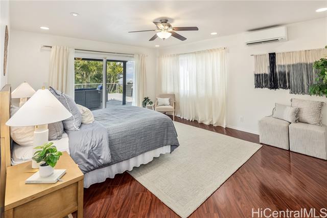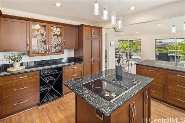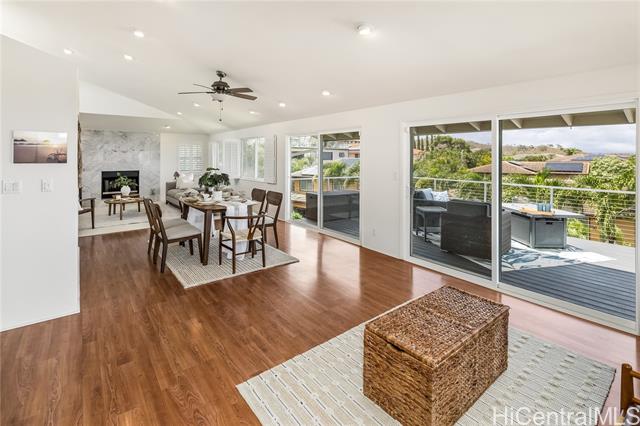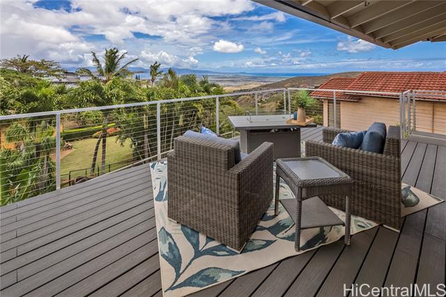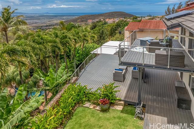 Breathtaking panoramic views! Privately located at the end of a quiet cul-de-sac in Makakilo’s prestigious Palehua Heights, this meticulously renovated 4-bedroom, 2.5-bath executive residence captures incredible views of the Pacific Ocean, Pearl Harbor, Diamond Head, and the Honolulu skyline from expansive upper and lower lanais. Designed for effortless indoor-outdoor living, the open-concept layout features a gourmet kitchen, spacious great room, and beautifully remodeled primary bathroom accented by recessed lighting and contemporary finishes. The primary and second bedrooms open to a serene lower lanai with built-in BBQ and a professionally landscaped yard—perfect for alfresco dining relaxed island living, and entertaining guests! Energy-efficient upgrades include 26 owned LG PV panels with net metering(NEM), four split A/C units, dual-pane windows, plantation shutters, a whole-house water filtration system, and more. A two-car garage and extended driveway offer ample parking, including space for a boat. Just minutes from H-1 freeway access, five-star Four Seasons resort at Ko Olina, Costco, Ka Makana Alii mall, and Target. First time on market in 20 years!