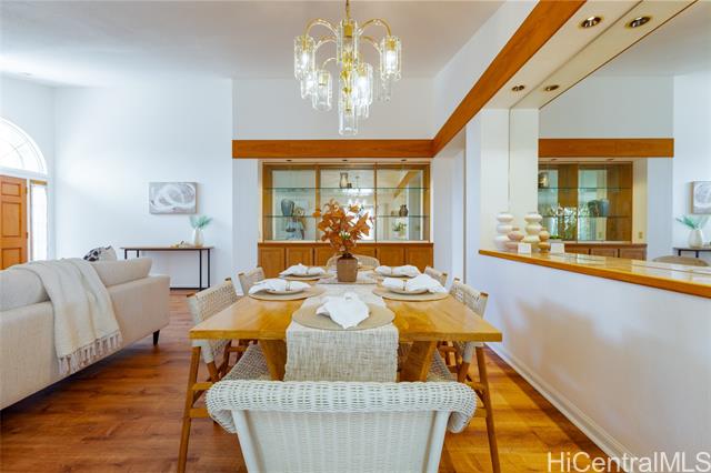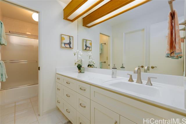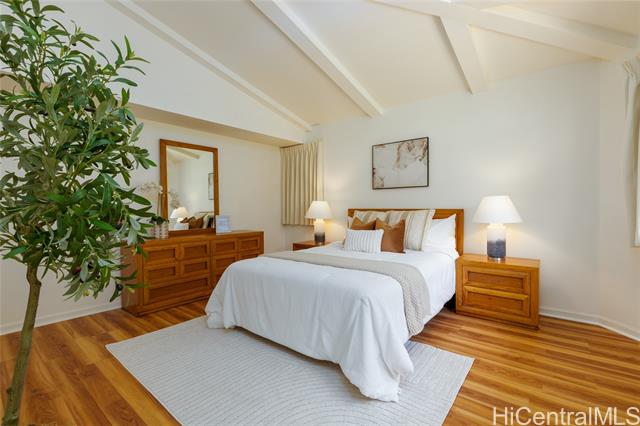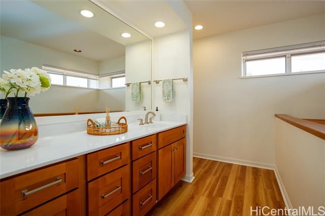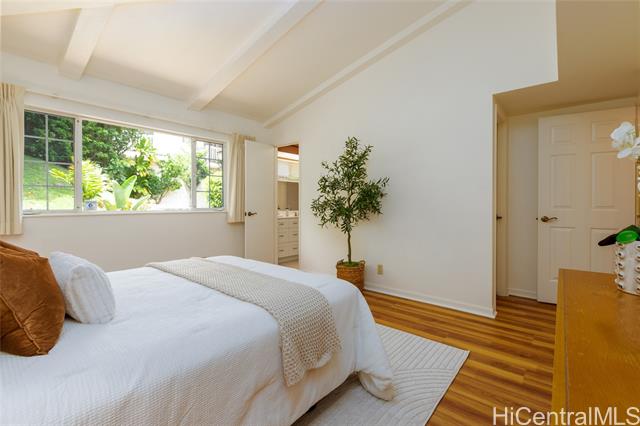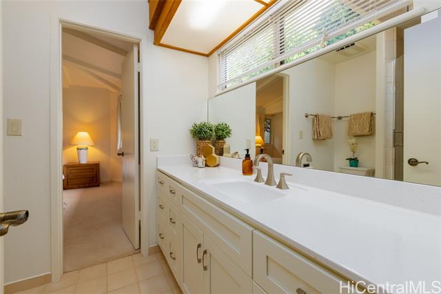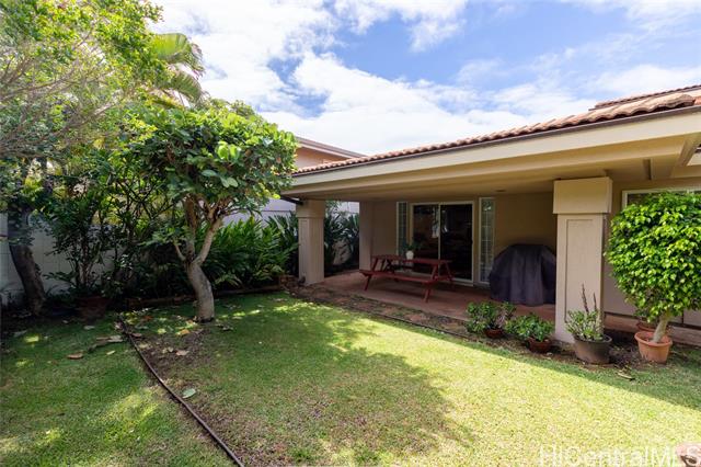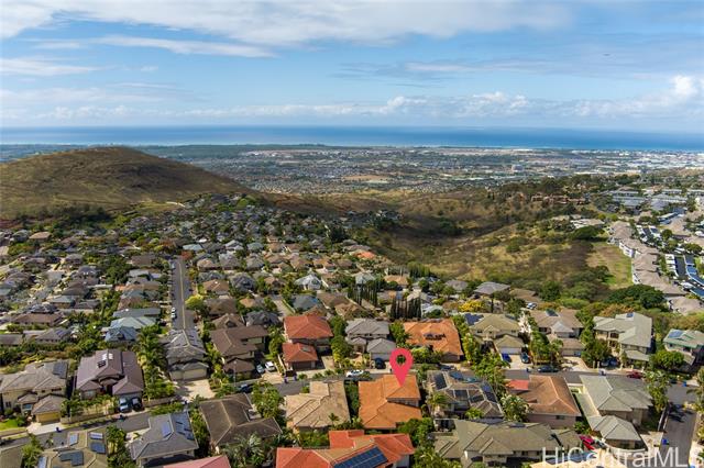A Rare One-of-a-Kind Custom Home in Makakilo-Palehua Heights! This beautifully maintained and thoughtfully upgraded 3-bedroom, 3-bath residence offers comfort and flexibility, with cool Makakilo breezes enjoyed year-round. Designed with multigenerational living in mind, the main level features two spacious bedrooms, each with its own full bath. Perfect for extended family, guests, or a home office setup. Upstairs, the private primary suite serves as a relaxing retreat with a spa-inspired bathroom, complete with a soaking tub, separate shower, and generous walk-in closet. The fully fenced backyard provides an inviting space for entertaining, outdoor dining, or simply enjoying your own private outdoor oasis. Recent upgrades include fresh interior and exterior paint, refinished kitchen cabinetry, new oven, cooktop, and range hood, refinished bathroom counters and tubs, new luxury vinyl plank flooring throughout, and newly replaced split A/C systems throughout, offering comfort and peace of mind. Conveniently located near Kapolei’s shopping, dining, schools, parks, and freeway access, this home blends island living with everyday convenience.
