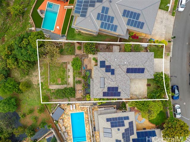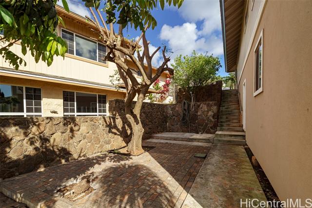 WOW, WHAT A VIEW! Breathtaking ocean vistas from every room of this 3-bedroom, 2.5-bath, perimeter lot home in Upper Makakilo. The chef’s kitchen impresses with a Sub-Zero refrigerator, massive island, outdoor-venting range, microwave, and a wine fridge. Split AC in all main rooms and bedrooms. 18-panel owned PV system and battery backup keep utility costs manageable. Enjoy the flexible bonus room as a home office, guest area, or creative space. Start your mornings on the back lanai with coffee and ocean breezes or host unforgettable dinners on the front lanai under the stars. The upper terrace features a serene koi pond above 18 fruit trees in and just beyond the backyard, including orange, mango, avocado, lime, pomegranate, pomelo, and tangerine. A gardener’s dream, the property includes a foundation already in place for a future greenhouse. Storage abounds with a garage tool area, multiple linen closets upstairs and downstairs, an under-the-stairs closet, and an impressive ~310 sq. ft. bonus storage room accessible from the side of the home. HOA $83.29/yr. VA buyers may assume the 2.375% loan with ~$886k balance. Secondary financing *might* be avail. Schedule a showing today!