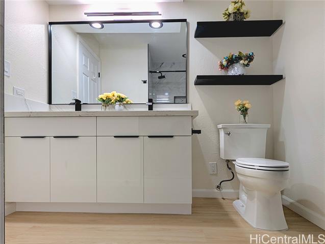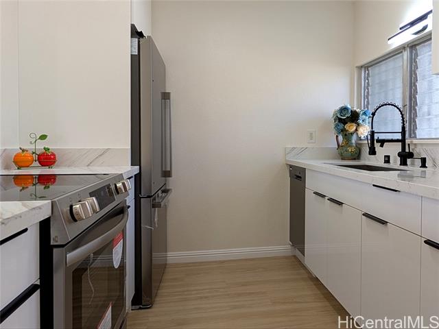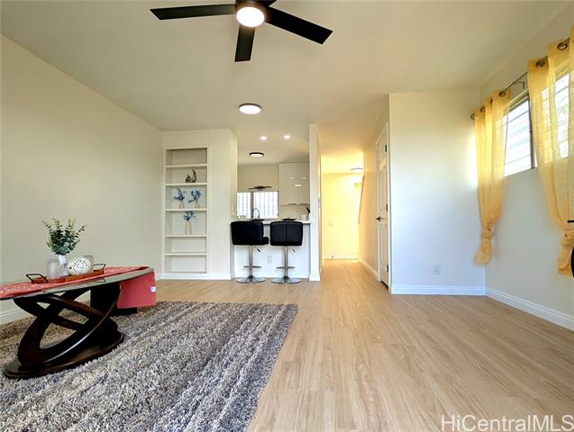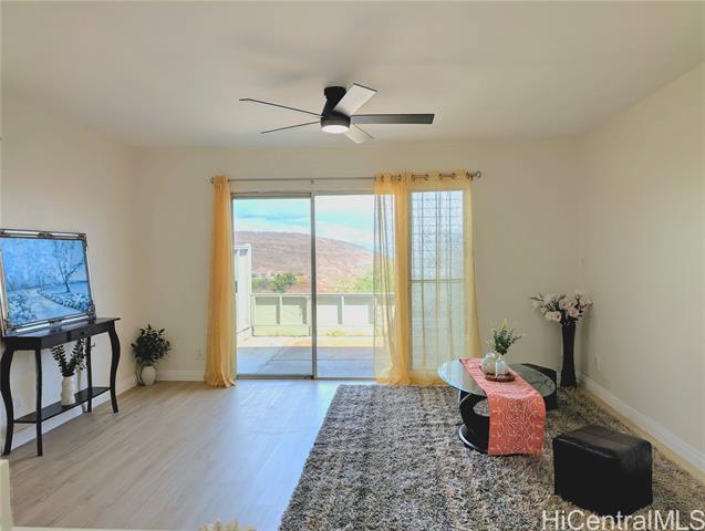 Welcome to this just beautifully and fully remodeled 2-bedroom, 1 full bath townhome located at Palehua Gardens up in Makakilo! They are New Kitchen with white high glassy, soft closing cabinets, quartz counter tops, New kitchen appliances, New bathrooms vanities with new titled shower, New luxury vinyl flooring, New interior paint, etc. This corner-end unit has a back courtyard and storage. You'll fall in love with the incredible & unobstructed stunning ocean views. This townhouse is located near freeway access, Kapolei's extensive shopping options, and just a short commute to the beautiful Ko Olina beaches. You are welcome to our First Open House this Sunday, 10/5 from 2:00-5:00pm!