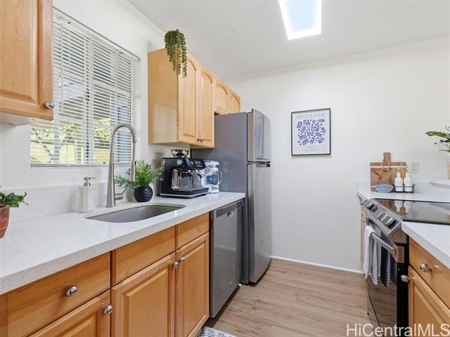 PUBLIC OPEN HOUSE THIS SUNDAY! Beautifully renovated 2-bedroom condo featuring a private yard, perfect for pet owners and ideal for outdoor enjoyment! The refreshed interior creates a welcoming, move-in-ready home. Work from home? ENJOY upgrades such as fiber optics throughout ensuring the fastest internet speeds. Ground-level living with easy indoor-outdoor flow in a convenient location to shopping, restaurants and H1 freeway. VA assumption terms also available to VA buyers!