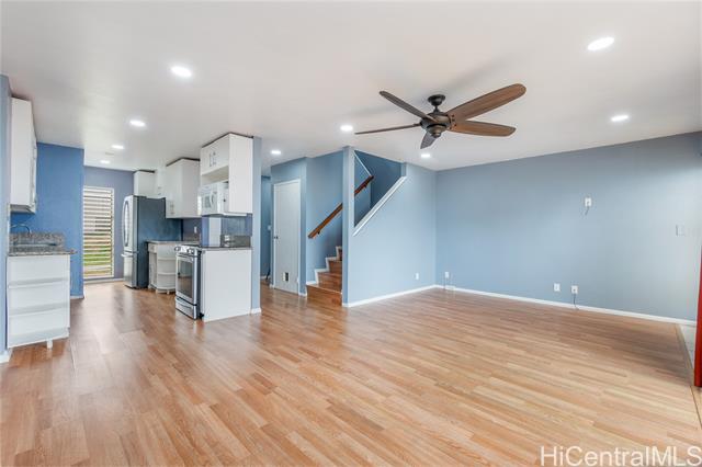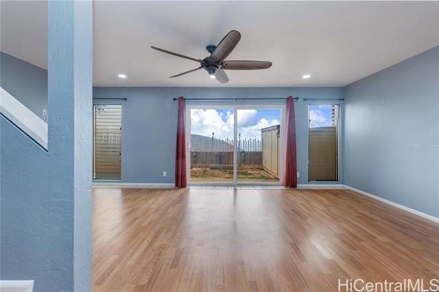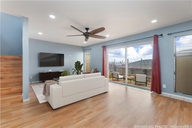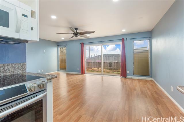 VA-assumable loan at 2.5% with an estimated balance of $608,000 and an approximate monthly payment of $2,939.30, including the P&I plus escrow account, available to VA-qualified buyers. Breathtaking Diamond Head, City, and Ocean Views! Welcome to Palehua Gardens! This spacious 4-bedroom, 2-bath townhome features a primary bedroom and full bath on the first floor, with three additional bedrooms and another full bath upstairs. As a corner end unit, it offers extra privacy, a fenced yard, and a grassy area just beyond, perfect for outdoor entertaining while enjoying the beautiful views. The home has been professionally painted, is clean, and is move-in ready while still allowing room for your personal touches. Includes two assigned parking stalls. Pet-friendly community with a pool just down the road. Conveniently located near shopping, restaurants, the water park, movie theaters in Kapolei, Ka Makana Ali‘i mall, and Ko Olina.