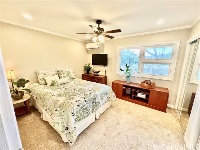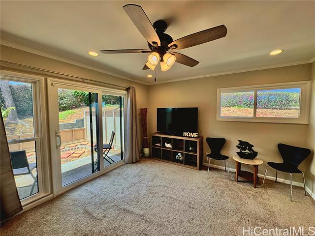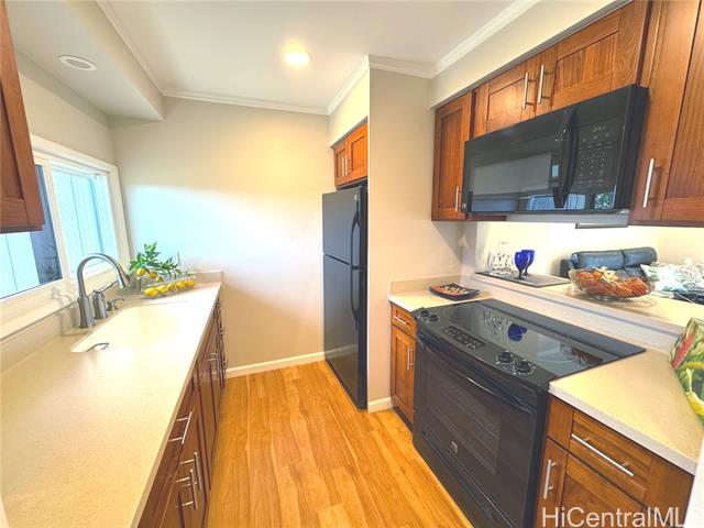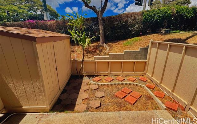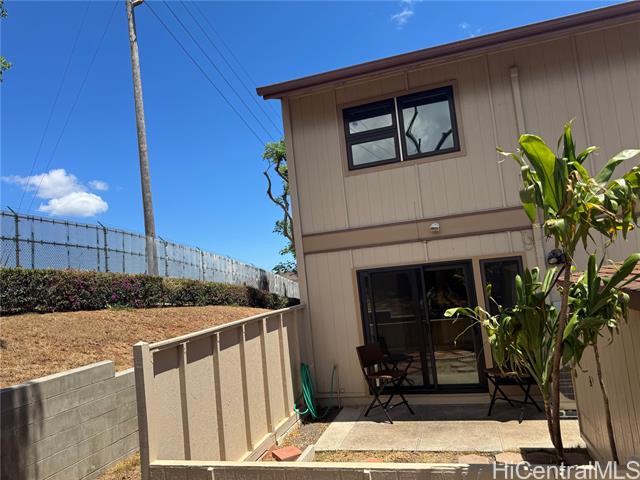 Welcome home to Palehua Gardens! This beautifully renovated townhouse has no units above, below, behind or on the right side! One of two units in this building with the reserved parking stall is 2nd stall from the building. The two bedrooms, full bathroom and laundry closet are on the upper level. The galley kitchen has a pass through to the open concept dining-living room. Bright and airy indoor - outdoor living! The fenced in courtyard has a large storage unit. This is a hurry and must see!