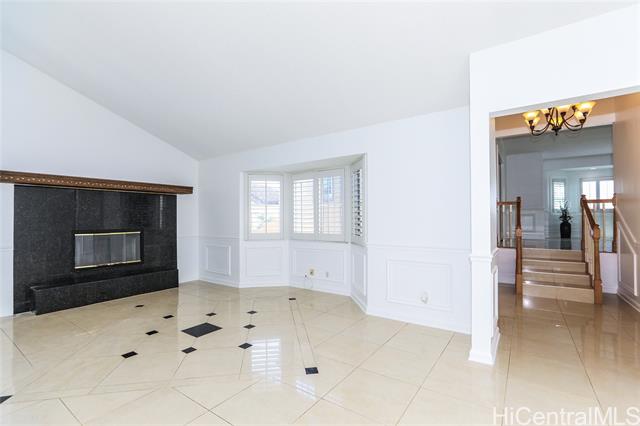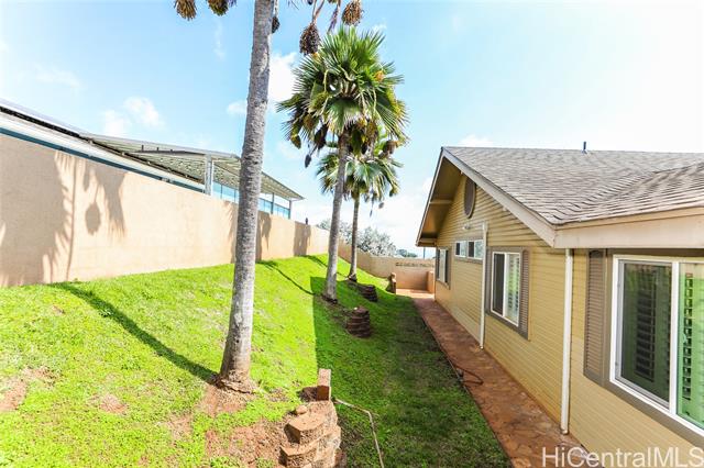 Welcome home to this charming, freshly painted single-level home in the desirable Colony Ridge community of Upper Makakilo! Located on peaceful Ulele Street, a quiet dead-end road with minimal traffic, this property offers a perfect lifestyle for families seeking comfort and convenience. This spacious home features 4 bedrooms and 2 bathrooms, including an accessible primary bathroom for added ease and flexibility. The open-concept layout with vaulted ceilings makes the living and dining areas feel bright and welcoming—perfect for family gatherings or movie nights by the cozy fireplace. Step outside to a large covered lanai, ideal for weekend barbecues, outdoor dining, or simply enjoying the cool Makakilo breezes. With 39-panel PV system, this home combines energy efficiency with effortless living. Association dues of only $10.00 per month. Enjoy the best of island life in a friendly neighborhood where pride of ownership shows throughout—come see why families love calling Upper Makakilo home!