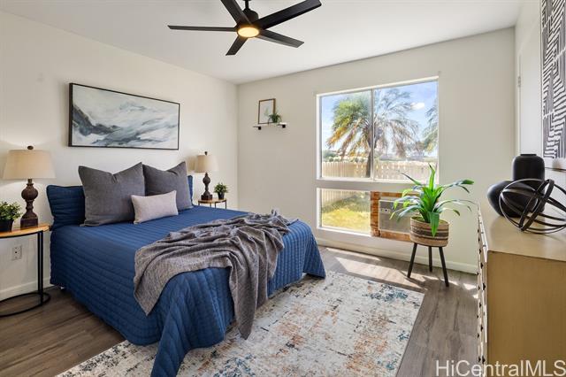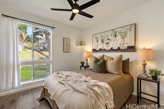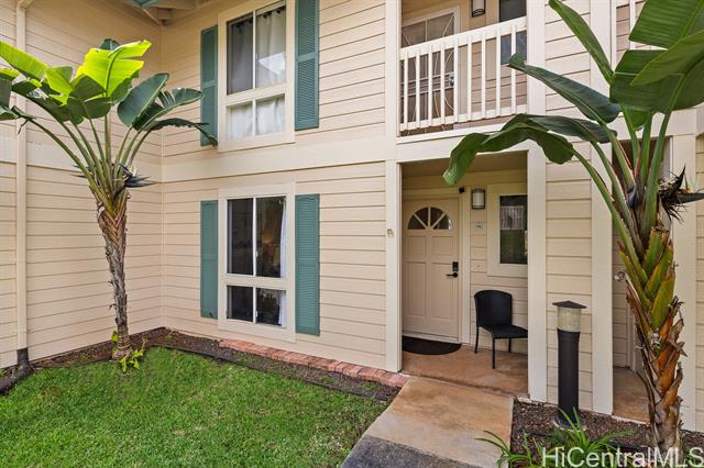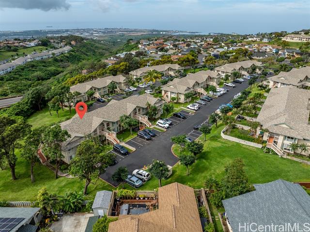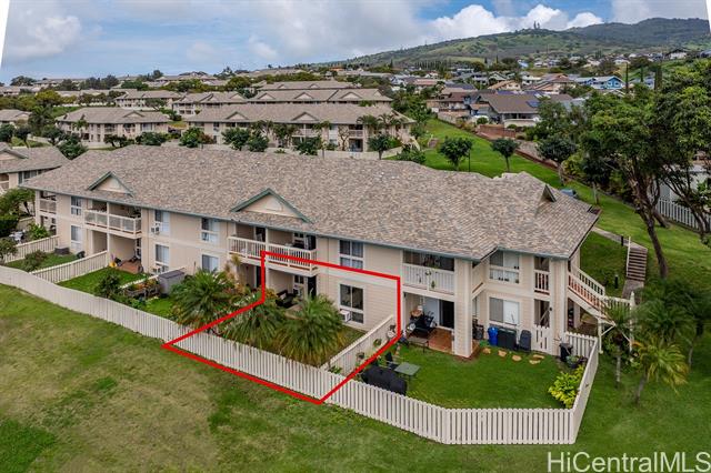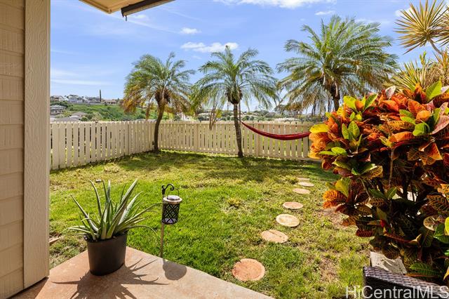 Welcome to Upper Makakilo's prestigious townhouse community, WestView at Makakilo Heights. Off Makakilo's main road Makakilo Drive, at almost the highest elevation, and unit being in the last innermost building, you can enjoy the peace and quiet of almost no cross-through traffic. This 2-bedroom/2-bath unit feels spacious for its interior square footage of 742. As a ground floor unit, you can enjoy a generous grass backyard with covered patio area, ideal for entertaining and for your furry babies to frolic freely. As a perimeter building there is nothing behind you but a large open grass area, expanding the vast open ambiance. The floor plan allows for maximum privacy in that each bedroom is on opposite ends of the unit, separated by both bathrooms. Enjoy the convenience of having one parking stall directly in front of the building and the second stall just across. The community car wash area and rubbish collection area are also near to your parking. Great starter home, in a great location. Come and enjoy.