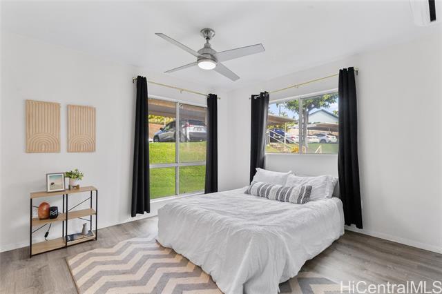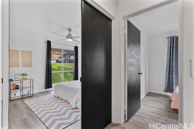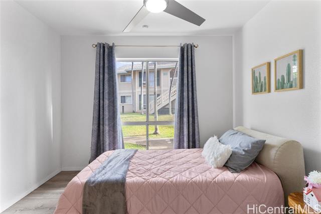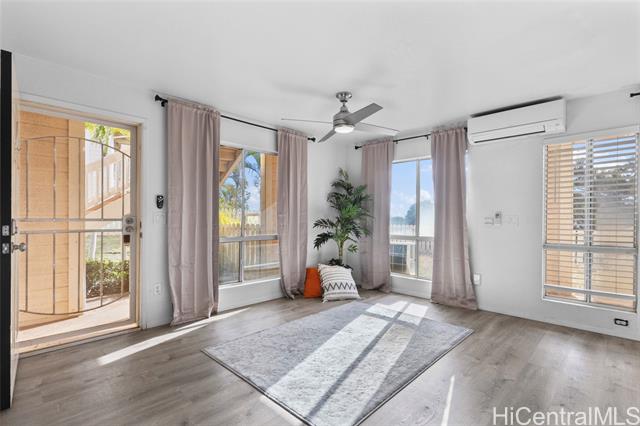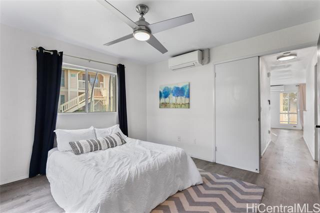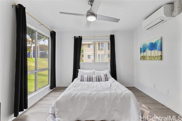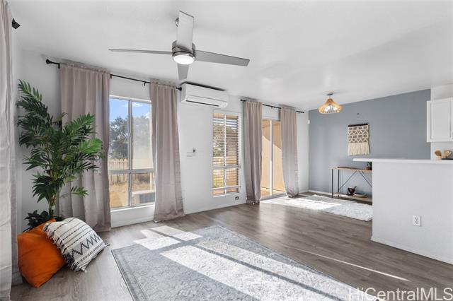 The ultimate ground level corner end unit in Westview at Makakilo Heights. This modern corner unit offers 2 spacious bedrooms and 2 bathrooms within 796 square feet of thoughtfully designed living space. Positioned on the ground floor, the home features vinyl flooring throughout, creating a sleek and easy-to-maintain living environment. Enjoy the convenience of a washer and dryer in the unit, along with split air conditioning to keep you comfortable year-round. Step outside to your private yard, perfect for relaxation or outdoor entertaining. With two assigned parking spaces and additional guest parking, your parking needs are effortlessly met. As a special incentive, the seller is offering a credit to the buyer, adding extra value to this charming home. Whether you're hosting gatherings or enjoying a quiet evening, this Makakilo gem provides the perfect blend of comfort and functionality.