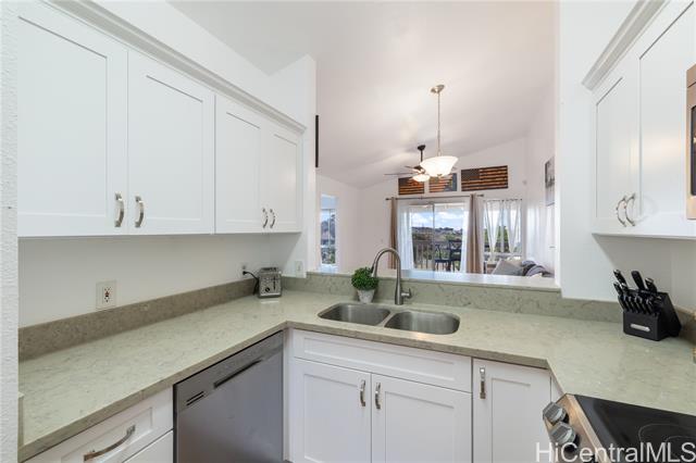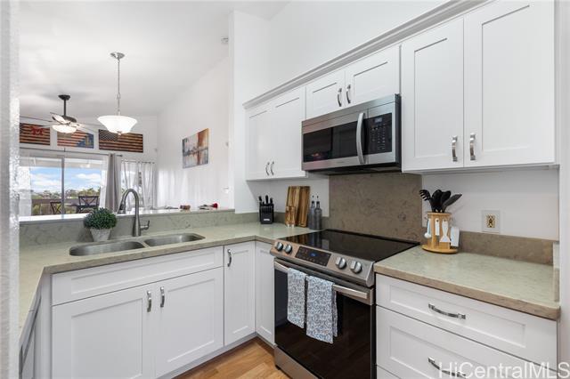 Move-in ready 2-bedroom, 2-bath townhouse with 2 parking stalls at Westview at Makakilo Heights! This well-maintained home features thoughtful upgrades throughout, including a fully renovated kitchen, upgraded primary bedroom windowpane, new lanai sliding door screen, two stylish ceiling fans, and a modern tankless water heater. Enjoy the comfort and privacy of a second-floor unit with a covered lanai offering open greenery views, abundant natural light, and partial ocean views. True move-in convenience without the need for major updates. Plus the building is Pet-friendly! Conveniently located near schools, shopping, and H-1 freeway access. Assumable VA Loan at 5.5% available for eligible veterans only. Contact your agent for details. An ideal opportunity for first-time buyers, military, or anyone seeking a move-in ready home in Makakilo!