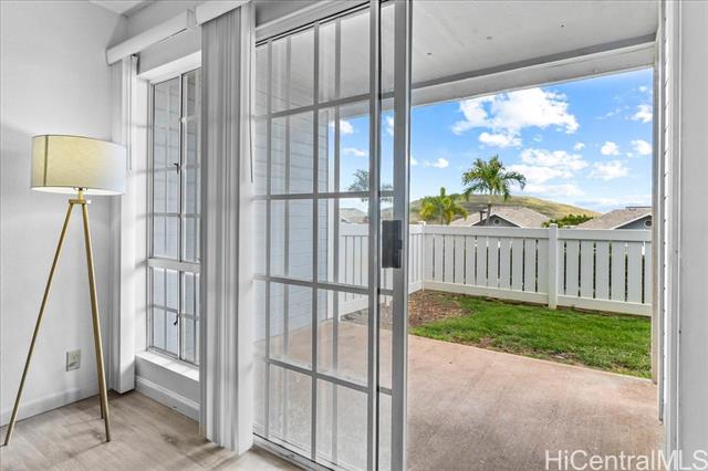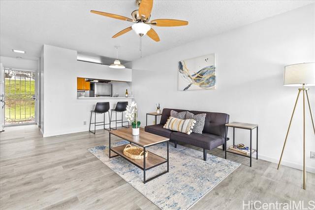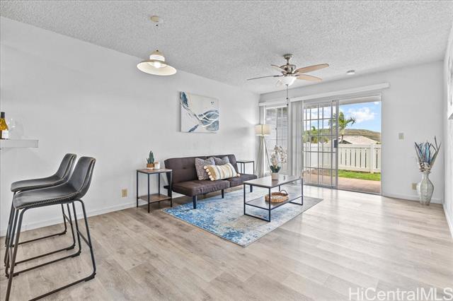 Seller is offering a $5,000 closing credit! Welcome to Makakilo Cliffs – where comfort meets convenience in this beautifully maintained 2-bedroom, 2-bath townhouse with 2 covered parking stalls and 15 owned photovoltaic (PV) panels for energy efficiency and low electric bills. Perched on the cooler slopes of Makakilo, this home offers refreshing breezes year-round. The open-concept living and dining area opens to a private yard, offering the perfect space for outdoor dining, gardening, or simply unwinding in your own peaceful retreat. The primary bedroom features an en-suite bath and ample closet space, while the second bedroom is ideal for guests, an office, or a growing family. Conveniently located near shopping centers, dining, schools, and freeway access, this move-in-ready unit combines the best of island living with modern comfort and energy-conscious living. Don’t miss your chance to own this gem in a sought-after community!