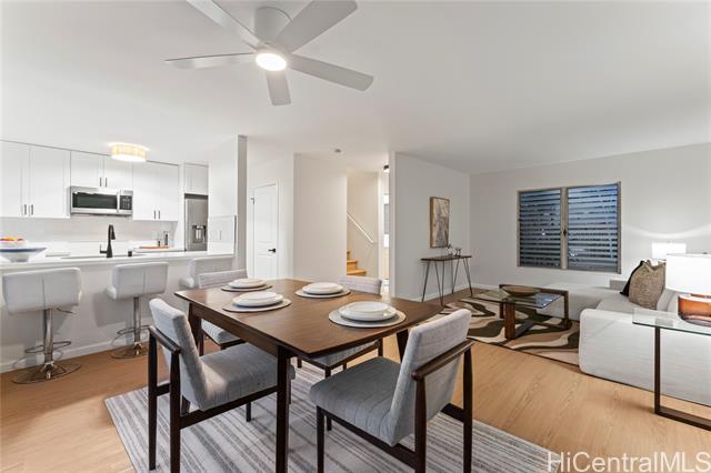 Welcome to Makakilo Hale One! This move-in ready, upgraded townhome is located in the heart of Upper Makakilo and features a lanai with a view. This property offers 3 bedrooms, 1.5 bathrooms, 2 assigned parking spaces, and low maintenance fees. The kitchen features new quartz countertops and brand-new Stove, refrigerator, dishwasher, Microwave hood and Stackable washer/dryer. The layout of this home is optimized to maximize natural light and cool breezes, creating a comfortable and welcoming ambiance. Amenities include a half bathroom on the ground floor and an in-unit laundry system.
