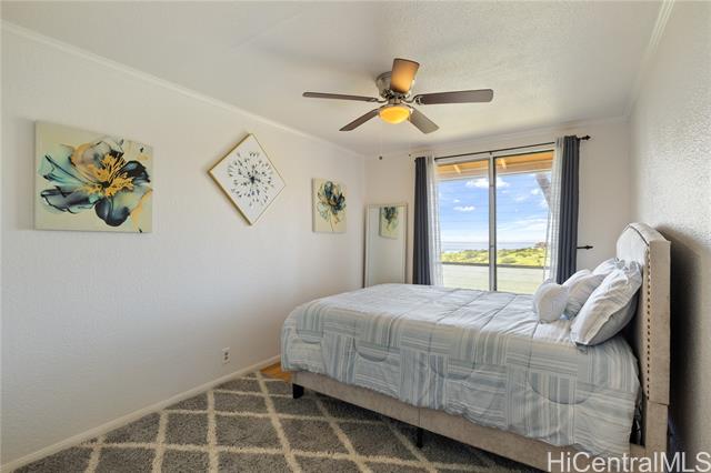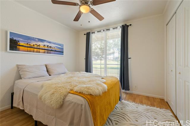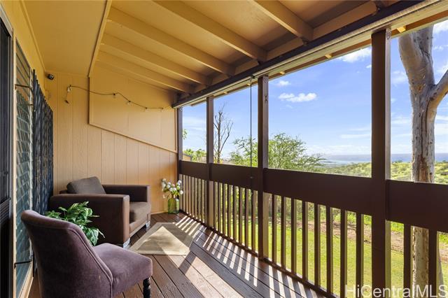 Welcome to this serene Makakilo residence, thoughtfully updated with fresh paint throughout and offering three spacious bedrooms and two well-appointed bathrooms. Enjoy cooling island breezes from the covered lanai while taking in sweeping mountain, ocean, and sunset views. The home features an L shaped chef-inspired kitchen equipped with generous counter space, and ample cabinetry perfect for both everyday living and entertaining. A bright, expansive living room opens to the lanai, showcasing stunning ocean vistas. Each bedroom is outfitted with brand-new ceiling fans and smoke detectors for added comfort and peace of mind. The property offers abundant storage with five closets located throughout the home and exterior areas. Residents enjoy access to a playground, swimming pool, walking paths, and an on-site resident manager. Ideally situated just minutes from H-1 access, Target, Costco, local dining, theaters, Ko Olina Resort, scenic hiking trails, pristine beaches, and more.