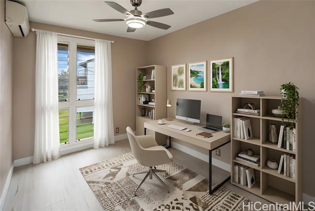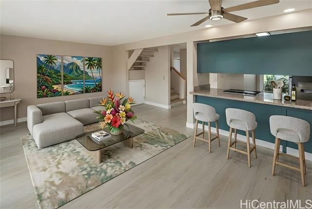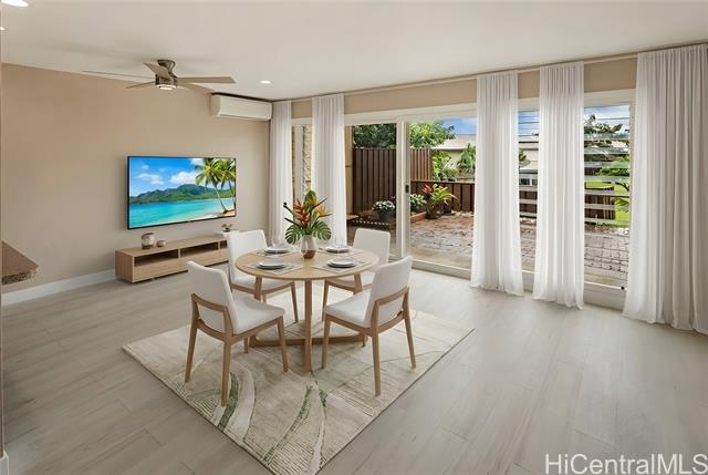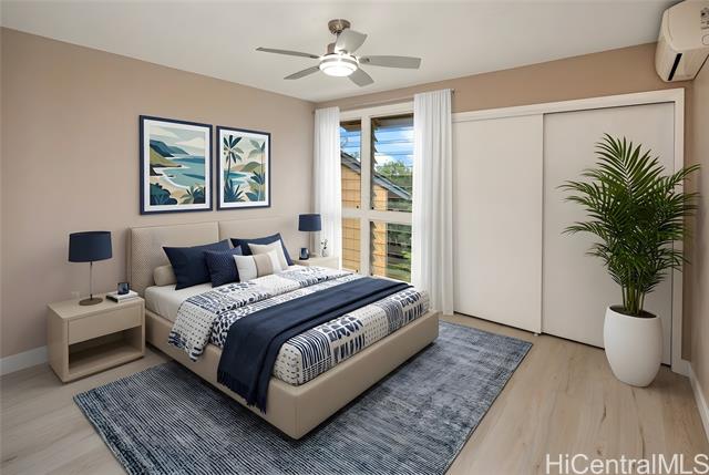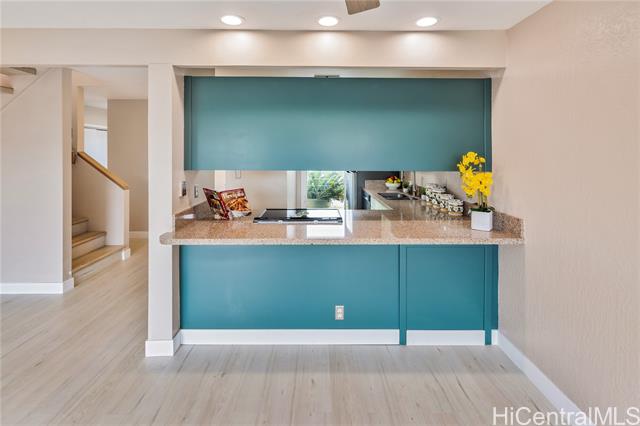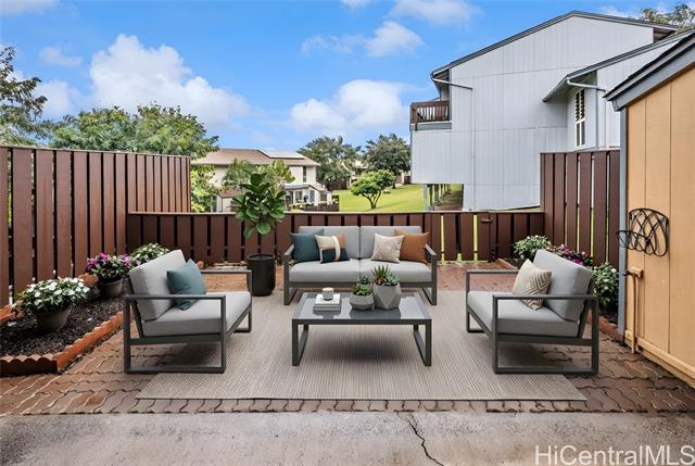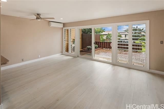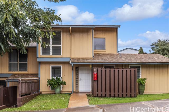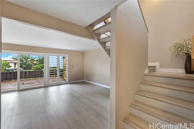 Welcome home to this nicely upgraded contemporary style townhouse in the desirable Palehua Townhouses community with an incredible 2.75% VA assumable loan opportunity! Spacious corner unit offers 4 bedrooms/2 full baths with an open floor plan, bright kitchen cabinetry with Silestone countertops, brand new SS appliances, split AC system, smooth ceilings, fresh interior paint, new waterproof Pergo laminate flooring, stylish fans & light fixtures. The main level primary bedroom with full bath & nearby laundry area provides excellent flexibility for multi-generation living. Step outside to a generously sized lanai for relaxing or entertaining. Pet friendly community. Close to schools, major shopping centers, dining, Costco, Kamakana Alii Mall & the world famous Ko Olina Resort lagoons. Enjoy the cool breezes of Makakilo with convenient freeway access. With its prime location & thoughtful upgrades, this property offers the perfect opportunity to experience an island living at its finest. Don't miss your chance to call this beautiful home yours! Photos are enhanced & the property is virtually staged.
