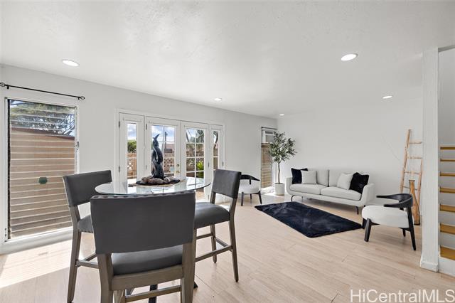 *VA loan assumption available at 3.375%* Don’t miss this exceptional opportunity! Welcome to Palehua Gardens in Makakilo! This corner end-unit townhome offers 3 bedrooms and 2 full baths with ocean, mountain, and city views from upstairs. Enjoy the comfort of recent upgrades including an updated electrical panel, washer/dryer, refrigerator, and water heater. The attic is insulated, keeping the upstairs cooler. The upstairs bathroom was renovated in 2023 and features a bidet. The spacious open-concept living area leads to a private, enclosed courtyard with a storage shed, ideal for BBQs, your furry friends & indoor/outdoor living. A rare layout includes two full bathrooms, with one conveniently located on the first floor. Also a part of the Palehua Community Association, enjoy access to the Kanehoa Recreation Center with a pool and recreation areas. *Current VA assumable loan balance $505,017.95, Current monthly loan payment $2,697.30 (excluding maintenance fees), Service Provider - Penny Mac, and Buyer must have full VA entitlement to assume loan and be open to early occupancy for longer closing timeline.