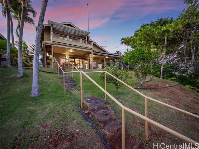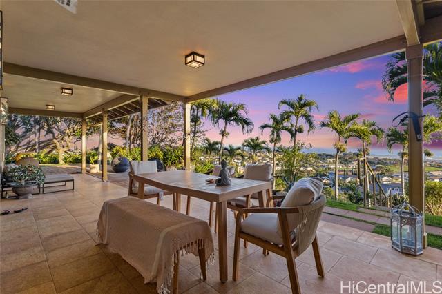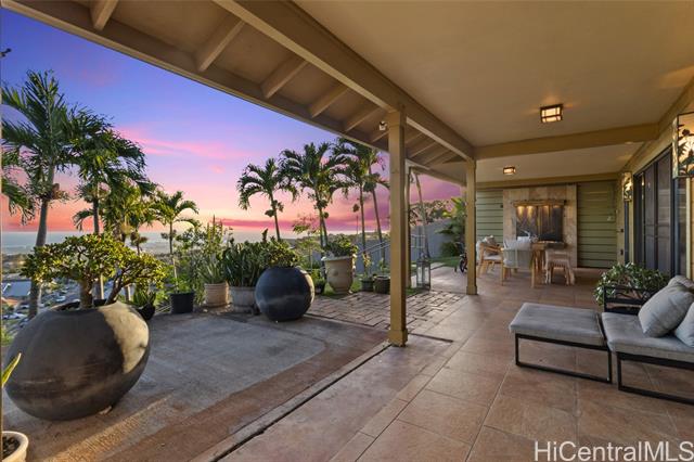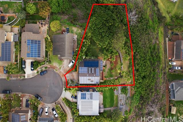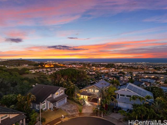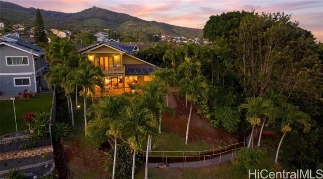 Discover the crown jewel of Makakilo West Hills ! Welcome to 92-4998 Limukele St, a rare offering where luxury, privacy, and breathtaking views come together on the largest lot in the neighborhood. This 3-bedroom, 2.5-bath home spans nearly 17,000 square feet on a prime rim lot, perfectly positioned on a serene cul-de-sac. Inside, you’ll find exquisite hardwood floors with cork underflooring for added comfort and quiet living, paired with granite countertops and high-end stainless steel appliances in the kitchen. Every room includes split ACs for ideal climate control. Custom stained-glass artwork and automated window shades add both elegance and convenience. The home is powered by a 60-panel owned PV system with a Tesla Powerwall on NEM, plus solar hot water with two 80-gallon tanks. Outdoors, the expansive grassy backyard with citrus trees and a covered lanai creates a peaceful retreat to relax or entertain while taking in panoramic views. the property also offers potential for an ADU (buyer to perform their own due diligence) Conveniently located near military bases, this home isn't just a residence, it's a lifestyle waiting to be embraced.