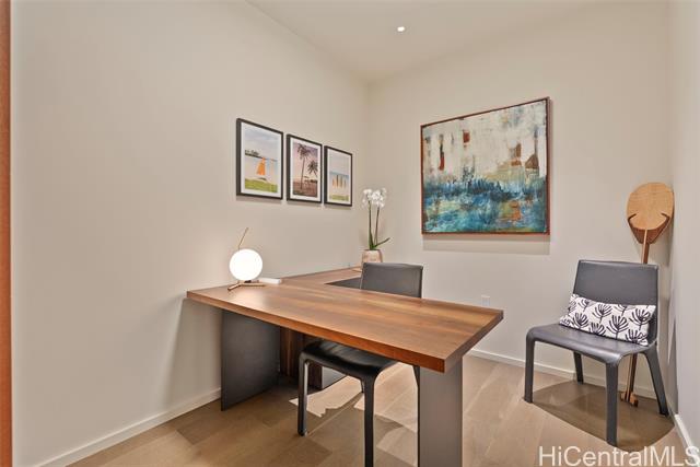 Located on the coveted 8th floor of the prestigious Park Lane Ala Moana, this refined 2-bdrm, 2-bath Courtyard Residence with a den offers an exceptional blend of island luxury and exclusivity. Tastefully furnished, the home is curated with world-class design elements, highlighted by an exclusive Swiss-made dining table by Zoom by Mobimex, Louis Poulsen’s iconic Artichoke pendent and many more, setting a sophisticated tone for both everyday living and elegant entertaining. Soaring ceilings and top-floor positioning enhance the sense of openness and tranquility, while the versatile den provides the perfect space for a home office, or media lounge. Ideally located across from Ala Moana Beach Park and steps from shopping & dining, Park Lane offers resort-style amenities including concierge services, fitness center, pool, spa, private theater, dining room, lush landscaped grounds, and more. A turnkey opportunity to own a meticulously designed and furnished home in one of Honolulu’s most sought-after addresses.