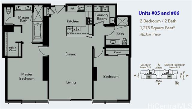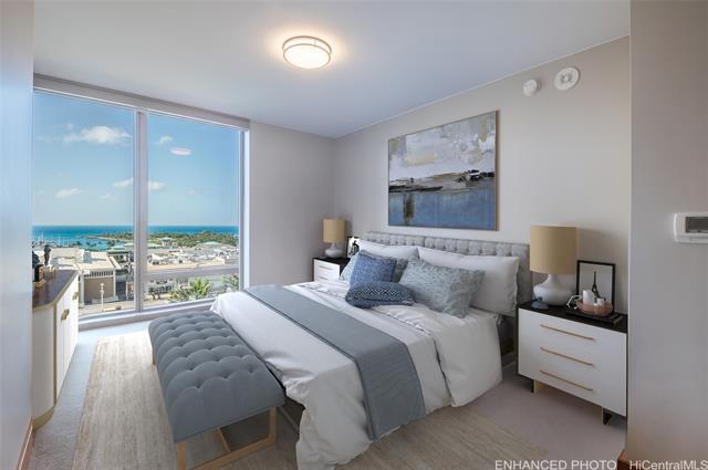 Come see this beautiful 2bdrm/2bth in ONE Ala Moana, an elegant, well designed residential building. Floor-to ceiling windows with ocean views. An expansive, open floor plan is ideal for entertaining family and friends. The easy access parking stall is conveniently located on level 5 –so not necessary to switch elevators to reach parking from the unit. Close proximity to world famous Ala Moana Shopping Center, beaches, Waikiki, and Kakaako. Beautiful resort amenities include an infinity pool, spa, guest suites, and more. Spectacular amenities including pool, spa, keiki pool, barbecue cabanas, a fitness center with locker rooms and sauna, private dining room and lounge, chef's kitchen, wine tasting room, movie theater, golf simulation room, putting green, jogging path, private shopping salon, dog park, guest suites, kids' multi-media room, with the restaurants and shops of Ala Moana nearby! This unit comes with two separate storage lockers (L428 & L429). Photos were taken from 06 floor plan which is the reverse of 05. Due to tenant’s privacy, actual unit pictures were not taken. One or more photos have been enhanced.