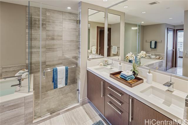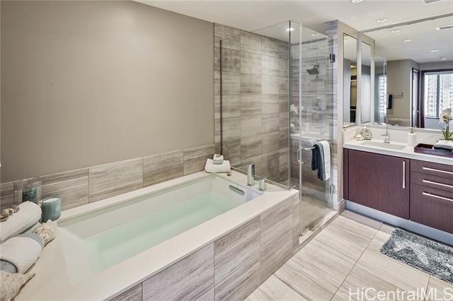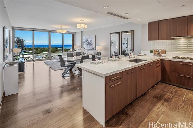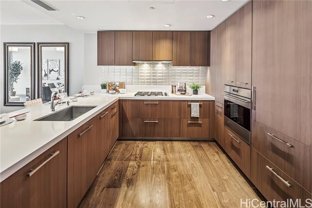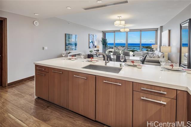 Step into ONE Ala Moana Unit 1300, where luxury meets lifestyle in the heart of Honolulu. This 1800 sqft of 3 bedroom, 3 bathroom residence combines modern elegance, floor-to-ceiling windows, and panoramic views of the ocean, city, and mountains. Hardwood floors were refinished just before listing, enjoy cooking with gas, Sub Zero refrigerator and Miele appliances. An open concept design in the kitchen, dining, and living, 2 en-suite bedrooms, guest bedroom, and a guest bathroom. Two side-by-side parking stalls are included, offering direct elevator access to the residence floor without the need to transfer. All furnishings can be included, making the transition effortless for the new owner. The ultimate convenience of daily living with direct access to Ala Moana Center. Shop daily essentials with Foodland Farms, Target, Long’s Drug Store, restaurants from fine dining to food court, and luxury shopping at your finger tips. Resort like amenities include: infinity pool, hot tub, sauna, fitness center, dog park, children’s playground, movie room, private dining, chefs kitchen, guest suites, library, conference room, and more. Secured parking with 24 hour concierge service.