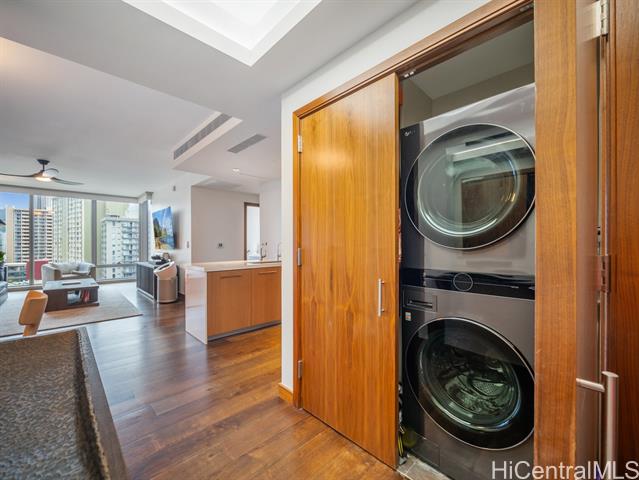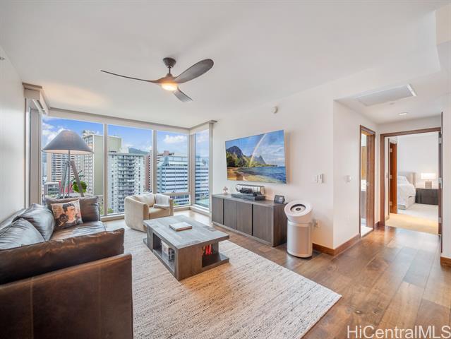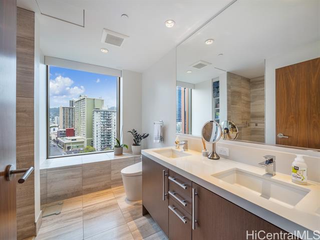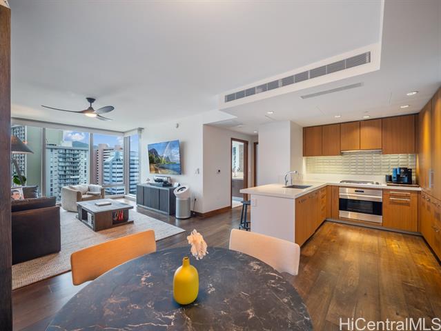 Turnkey luxury living in the heart of Honolulu! This beautifully upgraded 1-bedroom, 1-bath residence offers 881 sq ft of refined interior space, thoughtfully designed with California Closets built-ins. Offered fully furnished with high-end Restoration Hardware pieces, this home delivers a true move-in ready experience with elevated style throughout. Indulge in a spa-inspired bathroom featuring premium TOTO fixtures, including sought-after TOTO Neorest toilet. A standout feature rarely found in a 1-bedroom: 2 assigned parking stalls & 4 storage lockers. Residents enjoy resort-style amenities including a pool, fitness center, recreation areas, BBQ spaces & secured entry, creating a comfortable & convenient lifestyle right at home. Perfectly positioned along the Kapiolani corridor, just minutes from Ala Moana Shopping Center, Waikiki, world-famous beaches, and dining & entertainment. Whether you're looking for a primary residence or investment opportunity, this property offers the ideal combination of location, lifestyle & value. Don’t miss this rare opportunity to own this upgraded residence with exceptional parking & storage in one of Honolulu’s most desirable urban locations.
