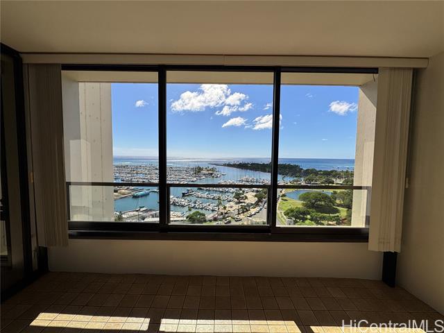 Enjoy beautiful marina views from this 1 bedroom/1 bathroom unit with enclosed lanai in the Ewa Tower. Conveniently located near Ala Moana Shopping Center and Beach Park.