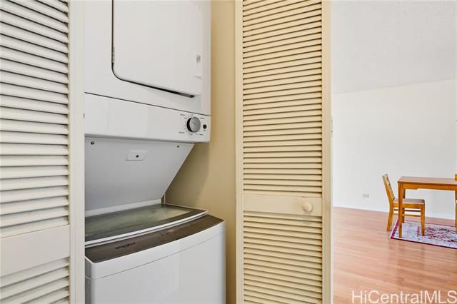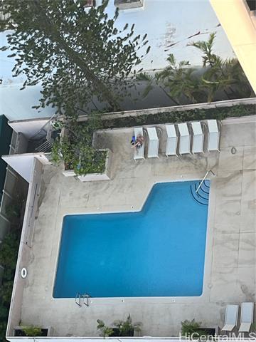 High Makai end unit with view of Ala Wai Canal and Harbor from lanai and kitchen window. Renovated kitchen, washer dryer, covered parking, guest parking, pet friendly, resident manager and security guard. Maintenance fee covers electricity WiFI, cable, water, sewer charges and hot water! BBQ area, pool, sauna and recreation deck. Very private yet next to the Convention center, close to Ala Moana Shopping Center, Waikiki and Magic Island. There's a keyed gate to the tree-lined walking path along the Ala Wai that leads to the Harbor First Open House this Sunday October 12th! Tax records may not agree