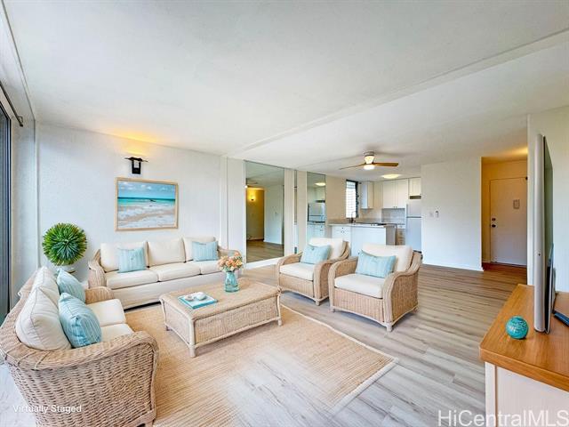 Enjoy privacy, extra living space and natural light in this end unit with enclosed lanai. Minutes away from some of Honolulu’s best attractions: Hawaii Convention Center, Ala Moana Center, Ala Moana Beach Park, Waikiki, Waikiki Beach, Kaka'ako, plus countless dining and entertainment options. Recent renovations include new LVT flooring, fresh interior paint, updated light fixtures and ceiling fans and a complete kitchen upgrade with new cabinets, quartz countertop and appliances. Breakdown of Maintenance fee of $971.00- $921.00 Maintenance Fee and $50 for cable TV/Internet. Other fees monthly of $1,909.00 is for a special assessment through January, 2026 which will be paid in full by the Seller.
