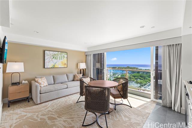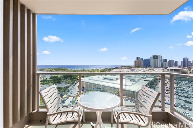Experience elevated island living in this 17th-floor 1-bedroom residence at the Ala Moana Hotel Condo, showcasing beautiful ocean views and a seamless blend of indoor and outdoor comfort. The spacious living area features sliding doors that open to create a breezy, open-air ambiance, while the bedroom extends to a private lanai overlooking the coastline. With direct connection to Ala Moana Center, this residence offers convenient access to beaches, dining, shopping, and entertainment. Enjoy resort-style amenities including a recently updated pool area, state-of-the-art fitness center with sauna, on-site dining options including the signature rooftop steakhouse, meeting facilities, and complimentary Wi-Fi. Whether used as a personal retreat or a turnkey vacation rental, this property offers a rare combination of comfort, style, and location in the heart of Honolulu.