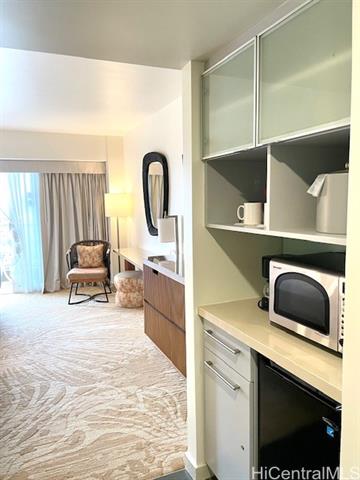 Experience easy island living in this tastefully furnished high-floor studio at the Ala Moana Hotel Condo. The unit offers calm city and ocean views from the lanai on the Diamond Head/Atkinson side and comfortably accommodates up to four guests. Freshly renovated and fully turnkey, Unit #2213 is a legal short-term rental currently in the hotel rental pool—ready to generate income from day one. Flexible management options allow you to self-manage, use the hotel program, or hire a third-party manager. Enjoy resort-style amenities including a heated pool, fitness center, sauna, on-site dining, valet, concierge, and more. Located next to Ala Moana Center and minutes from Ala Moana Beach Park, this is an ideal island retreat, second home, or investment. Monthly maintenance fee $1235 / month includes: electricity, air conditioning, internet, cable TV, and water/sewer— making ownership simple and convenient.