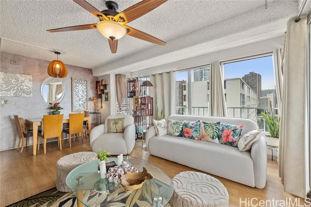 Welcome to Sunset Tower #1404, a cool and quiet corner residence offering spectacular panoramic ocean views stretching across Ala Moana Center, Magic Island, and beyond. Enjoy Friday night fireworks right from your spacious, open-covered lanai, an extended living space that spans the entire ocean-facing side of the home. This well-maintained 2-bedroom, 1.5-bath unit includes one assigned parking stall and a private storage locker for added convenience. The low maintenance fees, makes this a rare find in the heart of Ala Moana. Inside, you’ll appreciate numerous upgrades completed after the unit was purchased in 2011, along with the option to include all furnishings—perfect for a turnkey move-in or investment opportunity. Ideally situated near Waikiki, Ala Moana Shopping Center, world-class restaurants, beaches, and entertainment, Sunset Tower #1404 offers the ultimate blend of comfort, convenience, and island lifestyle. Don’t miss this chance to own a beautiful ocean-view home in one of Honolulu’s most desirable locations! Live the Lifestyle you always dreamed about! Seller may require to rent back for a couple months in 2026.