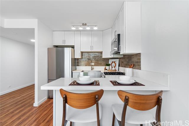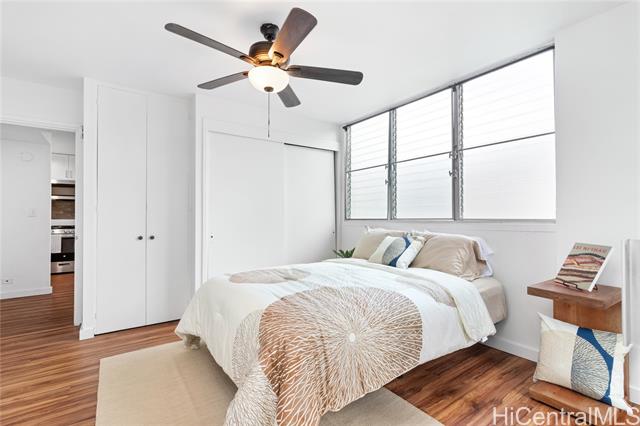 Excellent value in the middle of Honolulu, this 1 bed, 1 bath residence offers an efficient 476 sqft interior, complemented by a large 100 sqft lanai. Highlights include: upgraded kitchen countertops and cabinetry and recently installed vinyl plank flooring. From your bedroom, step onto the lanai - perfect for a morning workout, open-air dining or extra storage - with rolling shutters for added privacy and security. Your compact parking stall is located in the secured garage. Six Twenty Sheridan is a boutique condominium that offers secured entry, elevator access and a rooftop community laundry. Electricity is included in the maintenance fee, with shared solar panels helping to reduce costs. Live mere minutes from the excitement urban Honolulu, moments away from Ala Moana Center, Ala Moana Regional Park, major transit routes, essential services and outdoor activities. Ideal for a first-time homebuyer or investor!