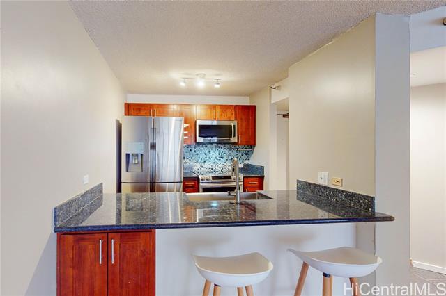 Prime downtown Honolulu living! Find your perfect urban retreat in the sought-after Honolulu Towers. This sunny unit features tile floors upon entry and vinyl throughout. The renovated kitchen includes granite counters and stainless steel appliances, and a spacious bedroom offers a peaceful escape. Enjoy resort-style amenities such as a pool, BBQ area, and 24-hour security. You'll be just steps from the Hawaii State Capitol, Iolani Palace, Honolulu Hale, and the lively arts scene at Hawaii Theatre and Honolulu Museum of Art. With major bus lines nearby and quick access to the H-1 Freeway, your Oahu adventures start here. A fantastic opportunity for both owners and investors. Don't miss out! This is a short sale and will be sold "As Is". Please add the Short Sale Agent Guideline (supplement) to all offers.