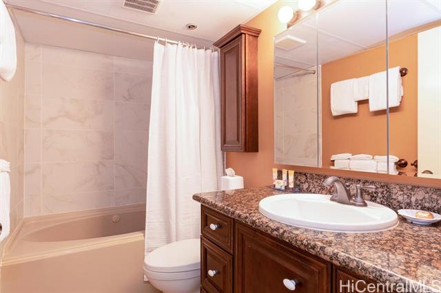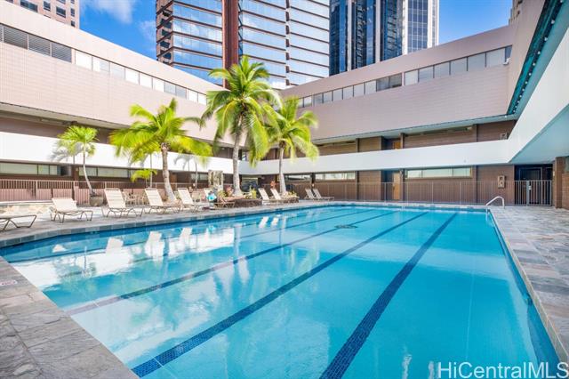 THE ONLY LEGAL SHORT-TERM DAILY RENTAL CONDO-HOTEL in the heart of the downtown Honolulu district. This tower suite largest 1-bedroom/1-bath floorplan offers a separate foyer entrance, floor-to-ceiling glass windows, upgraded full kitchen and bath, washer/dryer, central AC, and comes fully furnished including 1 assigned covered parking stall. Enjoy the high floor views of the Honolulu harbor, coastline and the brilliant colors of city lights. Great flexible mix use as rental and/or enjoy as a vacation or primary home and/or simply as an office living suite. Executive Centre is a reputable mixed use condo-hotel/office building conveniently located in short distances to offices, Hawaii Pacific University, eateries, art galleries, night market festivals, historic Chinatown, medical facilities, shopping centers, bus-lines, freeway access & many more essentials of the Honolulu's Downtown district. Maintenance fee includes cable TV, internet, (hot) water, sewer, common area expenses and capital reserves.