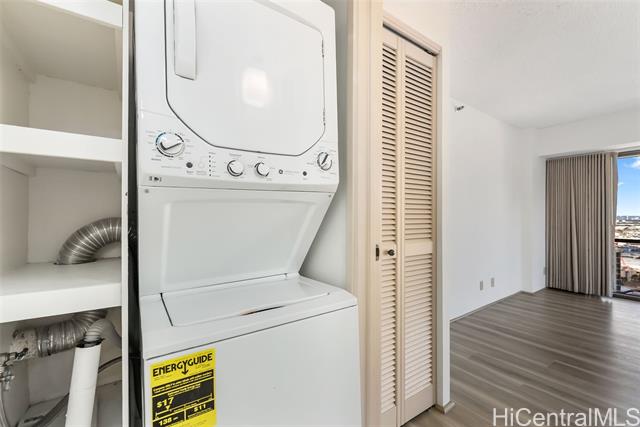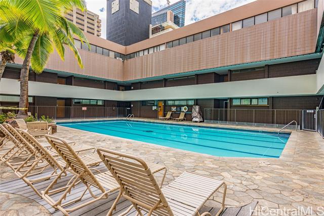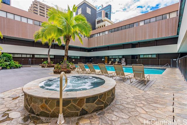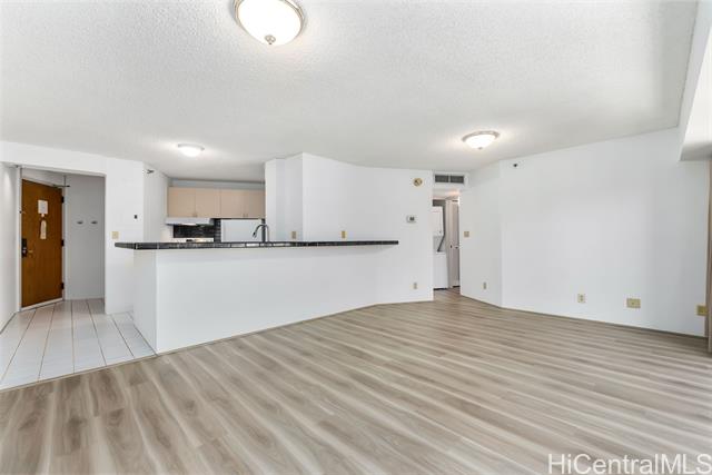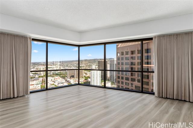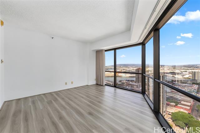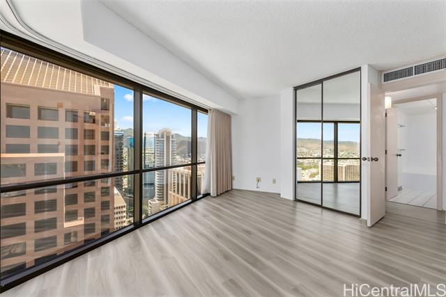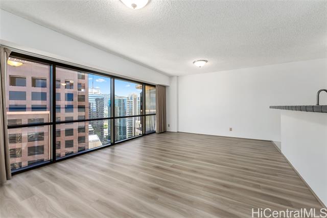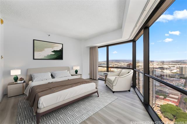 NEW LISTING!! Experience urban living at its best in this 1-bedroom, 1-bath unit at the Executive Centre in the heart of Downtown Honolulu. This spacious 616 sq. ft. residence features fresh interior paint, stylish vinyl plank flooring, and floor-to-ceiling windows that fill the space with natural light while offering beautiful city and mountain views. Enjoy the comfort of central AC and the convenience of an in-unit washer/dryer. Includes one covered parking stall. Centrally located near restaurants, shops, and entertainment. Don’t miss this fantastic opportunity! 3 Photos have been virtually staged(enhanced).