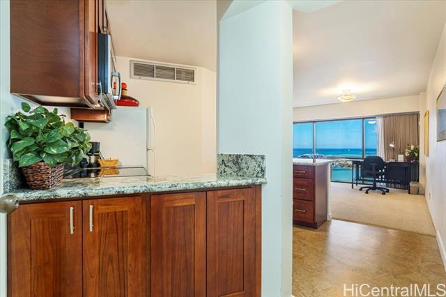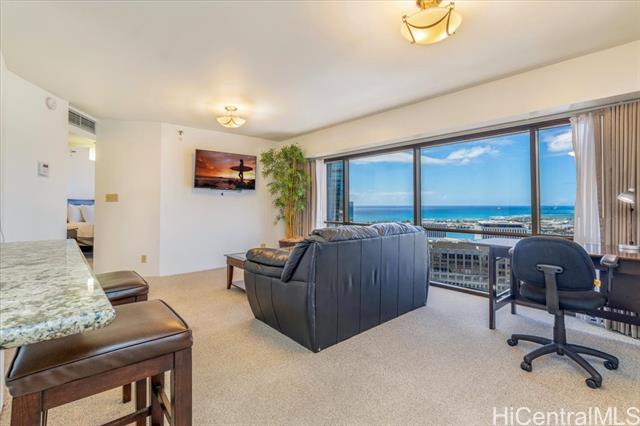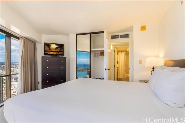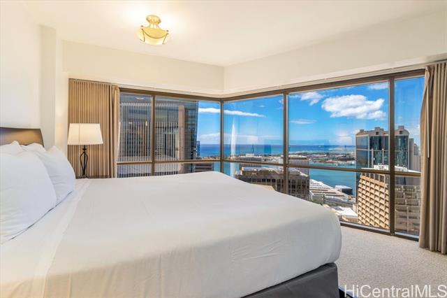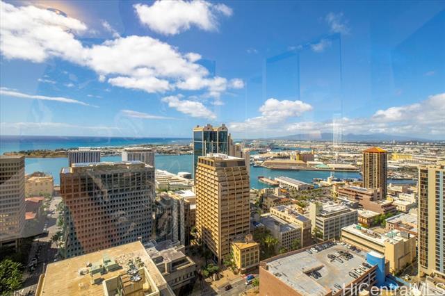 THE ONLY LEGAL SHORT-TERM DAILY RENTAL CONDO-HOTEL in the heart of the downtown Honolulu district. This tower suite largest 1-bedroom/1-bath floorplan offers a separate foyer entrance, floor-to-ceiling glass windows, upgraded full kitchen and bath, washer/dryer, central AC, and comes fully furnished including 1 assigned covered parking stall. Enjoy the high floor views of the Honolulu harbor, coastline, ocean and the brilliant colors of city lights. Great flexible mix use as rental and/or enjoy as a vacation or primary home and/or simply as a office living suite. Executive Centre is a reputable mixed use condo-hotel/office building conveniently located in short distances to offices, Hawaii Pacific University, eateries, art galleries, night market festivals, historic Chinatown, medical facilities, shopping centers, bus-lines, freeway access & many more essentials of the Honolulu's Downtown district. Maintenance fee includes cable TV, internet, (hot) water, sewer, common area expenses and capital reserves.