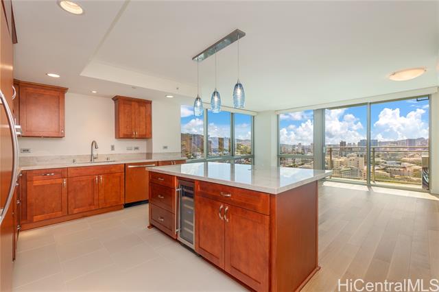 Luxury living awaits in this beautifully upgraded 3-bedroom, 2-bath corner end unit at Capitol Place with sweeping mountain-to-ocean views. The open-concept kitchen has been thoughtfully remodeled and expanded with high-end finishes, 5-in-1 Speed Cook oven, updated lighting, and modern electrical upgrades. Fresh interior paint and remote blinds add a sleek, contemporary touch throughout. The spacious primary suite offers a resort-style bathroom for the perfect retreat. Two side-by-side parking stalls are conveniently located near the elevator in a secured garage, plus three storage lockers provide added space and flexibility. Capitol Place features first-class amenities including a 24-hour staffed front desk, heated pool with cabanas, whirlpool spa, state-of-the-art fitness center, theater, yoga and music rooms, and a bark park for pets. Ideally situated near downtown Honolulu with quick access to H-1 and Pali highways, and minutes from Ala Moana Center, Ward Village, and SALT at Kaka‘ako with endless dining, shopping, and entertainment options. Some photos have been virtually staged.