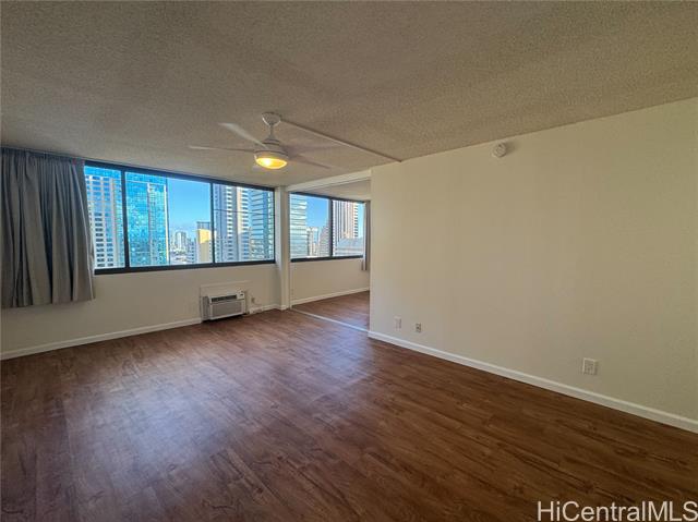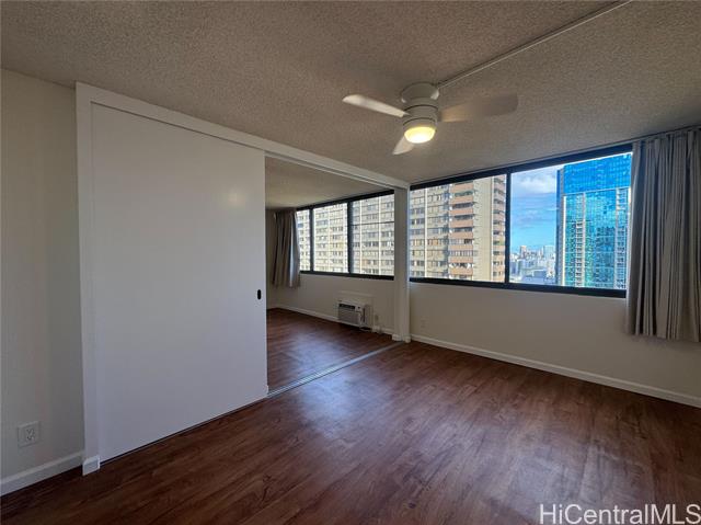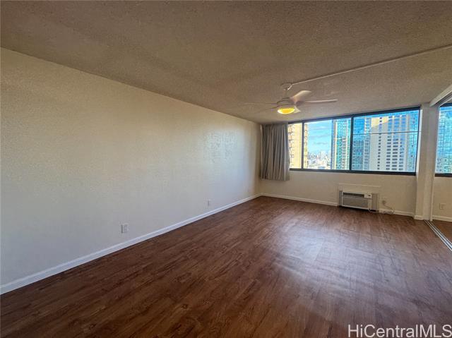 Enjoy downtown Honolulu living in this 1 Bedroom, 1 Bathroom unit in the Ewa Tower of Kukui Plaza. This property features vinyl flooring in the living room and bedroom and tile flooring in the kitchen and bathroom, window AC unit in the living room and pocket door dividers to the bedroom gives you options on living area. Conveniently located to freeway access, bus route and other public transportation, professional businesses, banks, restaurants, supermarkets and other retail shops. Amenities include a pool on property, multiple BBQ grills, a kiddie pool, 24 hr security, walking and jogging path, garden area, and recreational area. This property also includes 1 assigned parking stall.