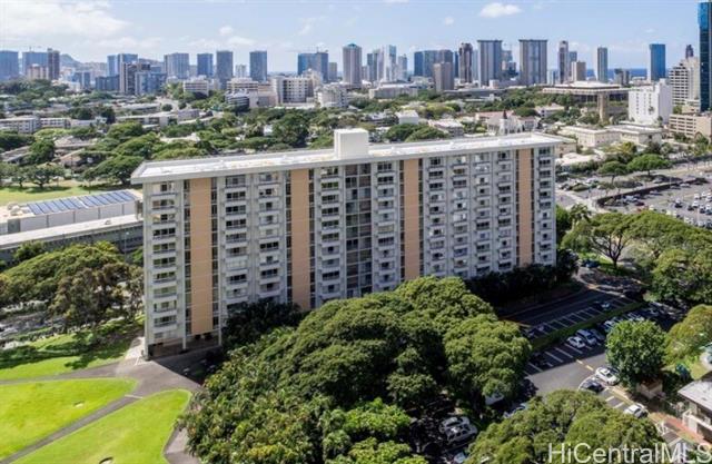 Welcome home to this beautiful 1-bedroom Queen Emma Gardens - Prince Building condo featuring an enclosed lanai that can be used as an additional room plus we have 1 car garage parking! Step inside this City View unit and you'll immediately notice the open and bright living space with laminate flooring that's perfect for both relaxing. The galley kitchen has plenty of cabinets and countertops plus a breakfast bar. The primary suite has a full sized closet, AC and an ensuite bathroom. On the other side of the living room is the enclosed lanai that's perfect for an office, den or extra bedroom! Queen Emma Gardens has a wonderful swimming pool, kiddy pool, lush Japanese Tea Garden, Koi ponds, walking paths, playground, community laundry, security and onsite management!and. Its prime location that's minutes away from Honolulu, shopping, dining, and entertainment options. Don't miss your chance to own this well priced full amenity condo. Contact us today to schedule a viewing and experience all it has to offer!