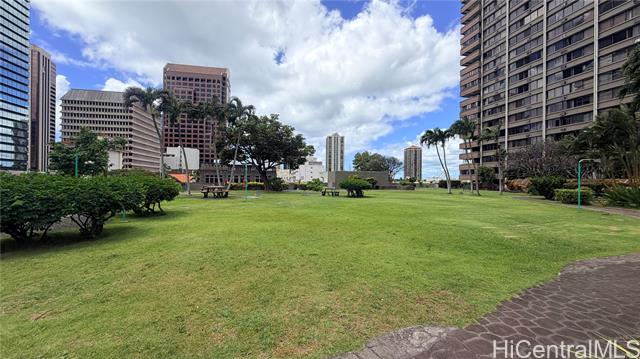 Ideally located in the heart of Downtown Honolulu, this 1-bedroom, 1-bath unit at Kukui Plaza offers the perfect opportunity for those seeking an urban lifestyle with room to customize. The residence features a spacious, open-concept layout with updated vinyl plank flooring. The space serves as a clean canvas ready for your personal touch and modern upgrades to truly make it your own. Kukui Plaza provides an unparalleled resident experience, boasting a massive 2.6-acre private park, a rare urban sanctuary complete with walking paths, waterfalls, a swimming pool, and BBQ areas. The building is well-managed and secure, offering 24-hour security, covered assigned parking, and the convenience of community laundry on every floor. You’ll be just steps away from the Financial District, Chinatown, Hawaii Theater, and a vibrant array of shops and eateries. Conveyed completely Fee Simple with no sandwich lease, this unit is a fantastic find for a buyer or investor looking to secure a prime location and add value through their own vision.