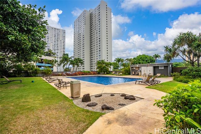 NEW LISTING!! Enjoy the best of urban living—where comfort meets convenience—in the heart of Downtown Honolulu! This tastefully upgraded 1 bdrm/1 bath condo, ideally located in the preferred Diamond Head Tower at Kukui Plaza, is a must-see. Boasting beautiful mountain and city views, this unit features modern vinyl plank flooring, a refreshed bathroom, removal of popcorn ceiling, and a stunning renovated open kitchen with quartz countertops and a sleek waterfall edge. The open floor plan welcomes abundant natural light, creating a warm and inviting space. Includes 1 covered, assigned parking stall. Kukui Plaza offers resort-style amenities including lush garden courtyards, tranquil ponds, a swimming pool, BBQ areas, 24-hour security, and more. Just moments from shopping, dining, and entertainment. Live the convenient Downtown Honolulu lifestyle!