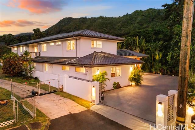 Classic island elegance harmonizes with contemporary luxury at this distinguished Nu'uanu estate. Thoughtfully designed, this residence offers four bedrooms (including 2 expansive primary suites & 2 private guest suites), along with 4.5 bathrooms & a spacious three-car garage, providing generous accommodations for both family & visitors. A custom architectural layout effortlessly blends indoor & outdoor living, creating seamless spaces for everyday comfort & stylish entertaining amidst lush natural surroundings. The gourmet kitchen is appointed with a striking curved Labradorite granite bar, professional-grade appliances & refined cabinetry, making it both beautiful & functional for culinary endeavors. Meticulously landscaped grounds foster a serene ambiance, anchored by an inviting pool & jacuzzi complemented by a custom-built gazebo for leisure & privacy. A newly constructed meditation deck overlooks Niniko Stream & its tranquil waterfall, adding to the home's sense of retreat. Upon arrival, guests are greeted by a resort-style porte-cochère & leading to a private sanctuary in the heart of Nu'uanu Valley. A TRULY UNIQUE ESTATE THAT MUST BE EXPERIENCED TO BE FULLY APPRECIATED!