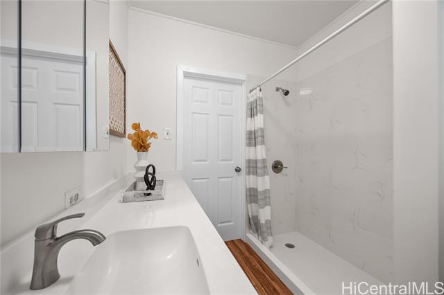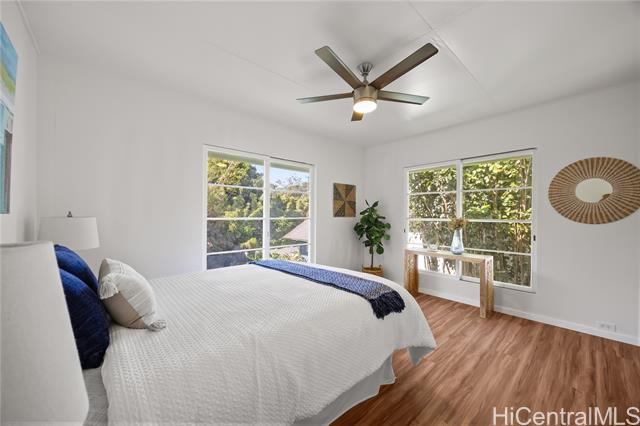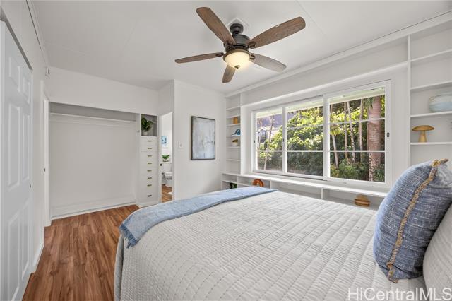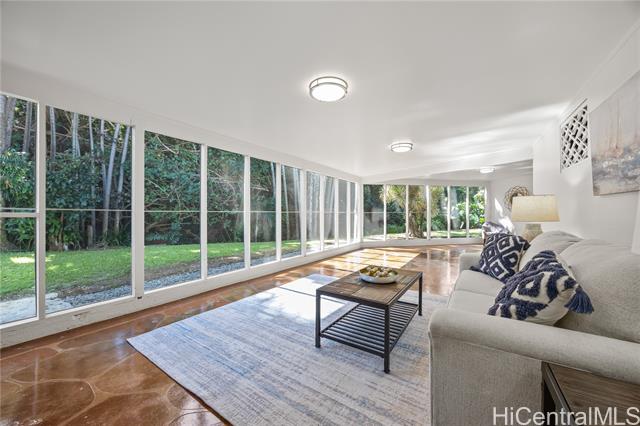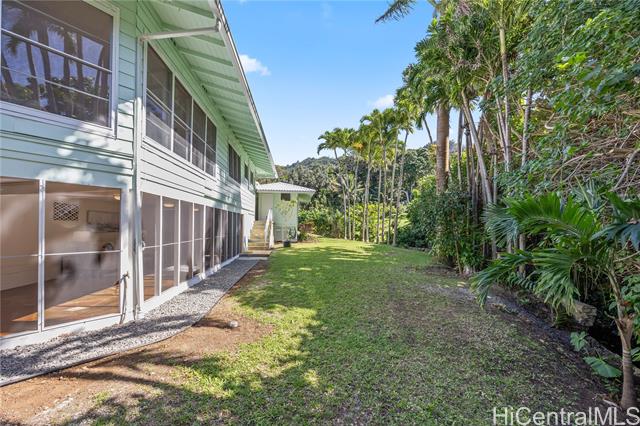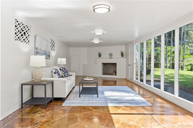 Charming Dowsett home nestled within the tranquil surrounds of Nu'uanu valley in a lush garden setting. This 5 bedroom 4 bath residence provides separate living areas creating flexibility of use for multi-generational living or various rental options. Currently configured with a 2bd/2ba main living area, studio with full bath and wet bar, a separate guest quarters off the carport with a full bath and a downstairs spacious living space with bedroom. Relax and enjoy the gentle sounds of the stream and the private canopy of trees. The high curved ceilings of your family room enhances the views of your backyard sanctuary. Entertain guests in the large den as you sit around the fireplace. Newly renovated primary baths with quartz counter tops and hardwood cabinetry. Luxury vinyl flooring runs through the main living area with finished concrete on the lower level. Your residential retreat in the heart of Nu'uanu minutes to downtown Honolulu and over the Pali to the windward side of Oahu.