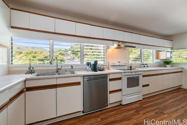 Nuuanu Valley kama'aina home owned by the same family since it was built in 1968. Quiet and cool location near the mountain with relaxing views. Three bedrooms and two bathrooms upstairs plus the large kitchen! Freshly painted inside and out, new vinyl plank flooring upstairs. Downstairs living area has potential to be a separate long term rental. Two car garage plus driveway space. Located in the Nuuanu Elementary school district and close to hospitals, Oahu Country Club, shopping, dining, and public transportation.