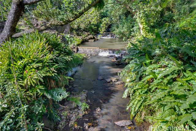 Nestled among the lush canopies of Dowsett, next to the tumbling Nu'uanu Stream, this serene parcel has APPROVED architectural plans, PERMITTED TO BUILD — No DPP wait. Designed by award-winning local architect Jim Schmit, known for tropical modernism and island sensibility, this contemporary residence is designed to live among the trees and belong to this coveted Hawaii neighborhood. Enter from a level approach off Pelekane Drive, expansive floor-to-ceiling windows frame the living greenery like art, while below, the stream tumbles across terraced tiers into soothing gentle waterfalls. A covered lanai extends living outward, and an approved ADU above the four-car carport offers endless possibility — home office, studio, guest quarters. This is Dowsett: steeped in history, embraced by tropical vegetation, and the quiet magic of one of O'ahu's most cherished valleys. The lot is graced with monstera, Java plum, mango, Hawaiian ginger, 'ulu, ti leaf, heliconia, and more. Plans fully approved — talk with your builder today.