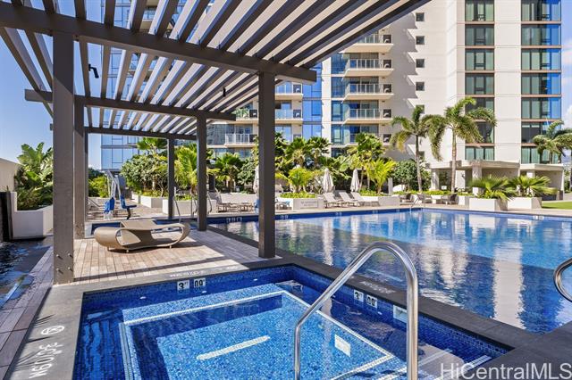 Sky Ala Moana West, completed in 2023, is ideally located in Midtown Ala Moana, close to Ala Moana Beach Park, Ala Moana Center, and Waikiki. This highly desirable 2-bedroom, 2-bath 08-stack residence features floor-to-ceiling windows, Silestone countertops, Bosch appliances, a full-size washer and dryer, split A/C in every room, dual sinks in the primary bath, two custom walk-in closets, a large entry storage closet, and a 96 sq. ft. lanai with stunning city and mountain views. The unit also includes two side-by-side parking stalls and a storage locker. Designed in partnership with the Renaissance Marriott Hotel, Sky Ala Moana’s two towers offer exceptional resort-style amenities, including two heated saltwater pools, saunas, a cold plunge, an indoor/outdoor fitness center, hot tubs, BBQ cabanas, party rooms, a dog park, and more. Just one block from Target, Walmart, and Ala Moana Center—and minutes from the beach and Waikiki—this is an amazing opportunity to own in one of Honolulu’s premier newer developments.