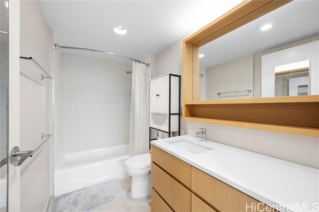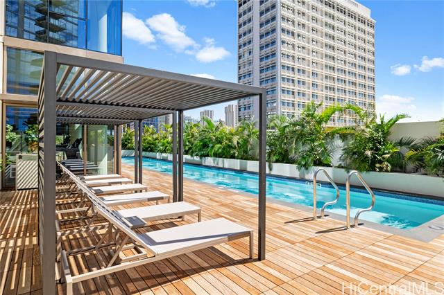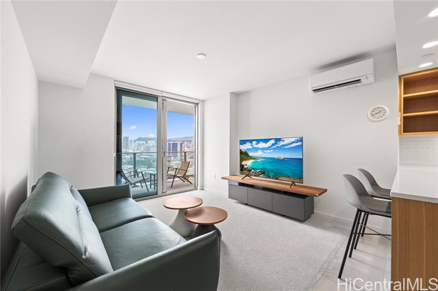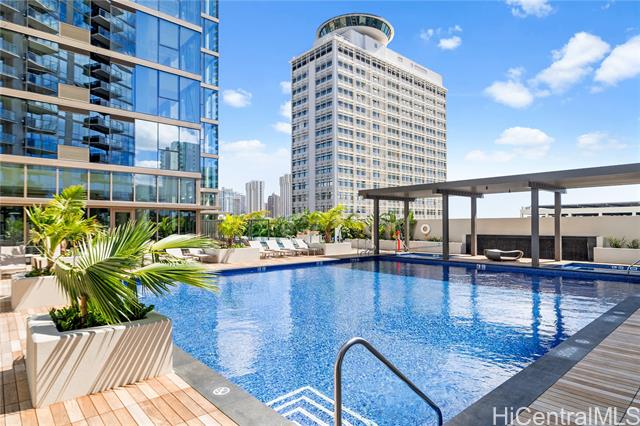 Modern residence in Sky Ala Moana West offering comfortable urban living. Bright and airy layout with contemporary finishes, Bosch appliances, and spacious lanai showcasing city and mountain views. Enjoy access to a 50,000+ sq ft amenity deck featuring resort-style pools, spa, fitness center, and entertainment spaces. Prime Ala Moana location directly across from Ala Moana Center and close to shopping, dining, beach, and more! Real property tax amounts reflect 2025 assessed values